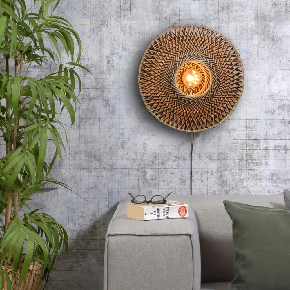 Rund bambus væglampe Bali med afbryder
