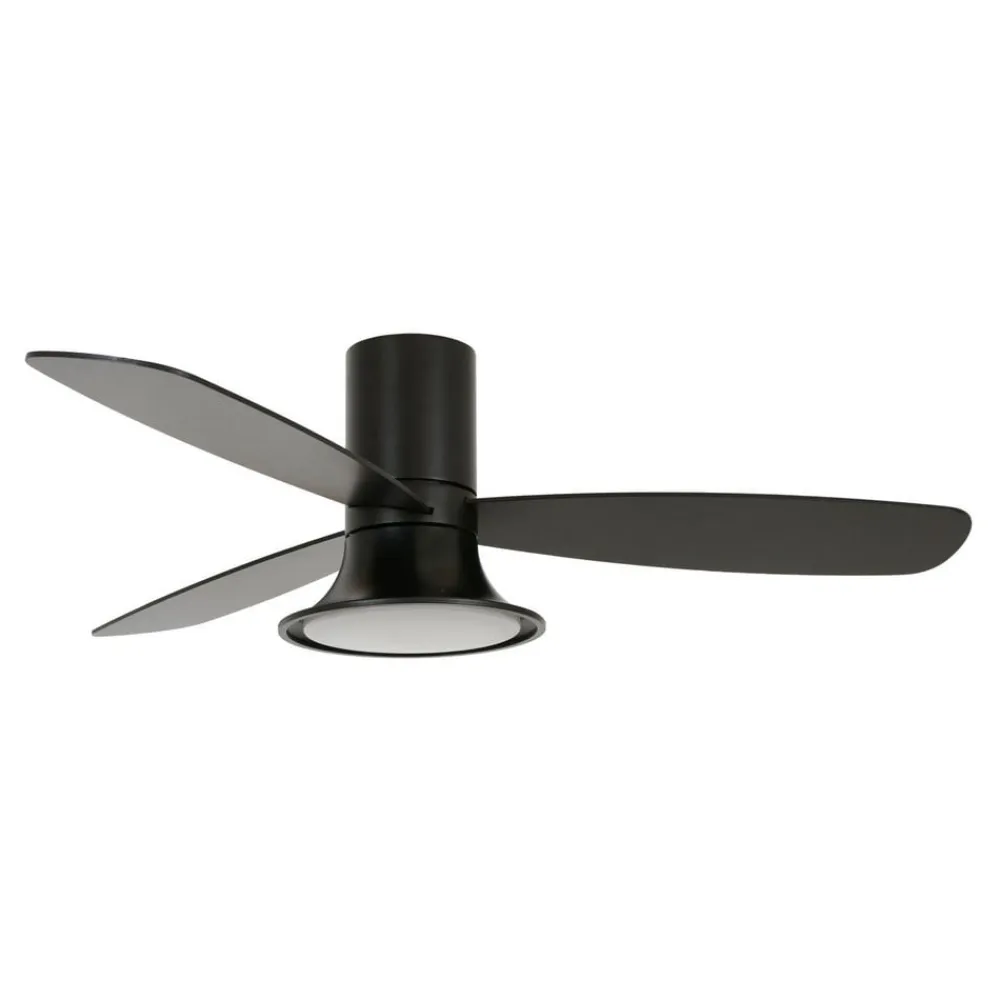 Trebladet LED-loftventilator Flusso i moderne look med dæmpbar lampe