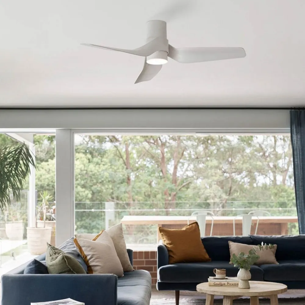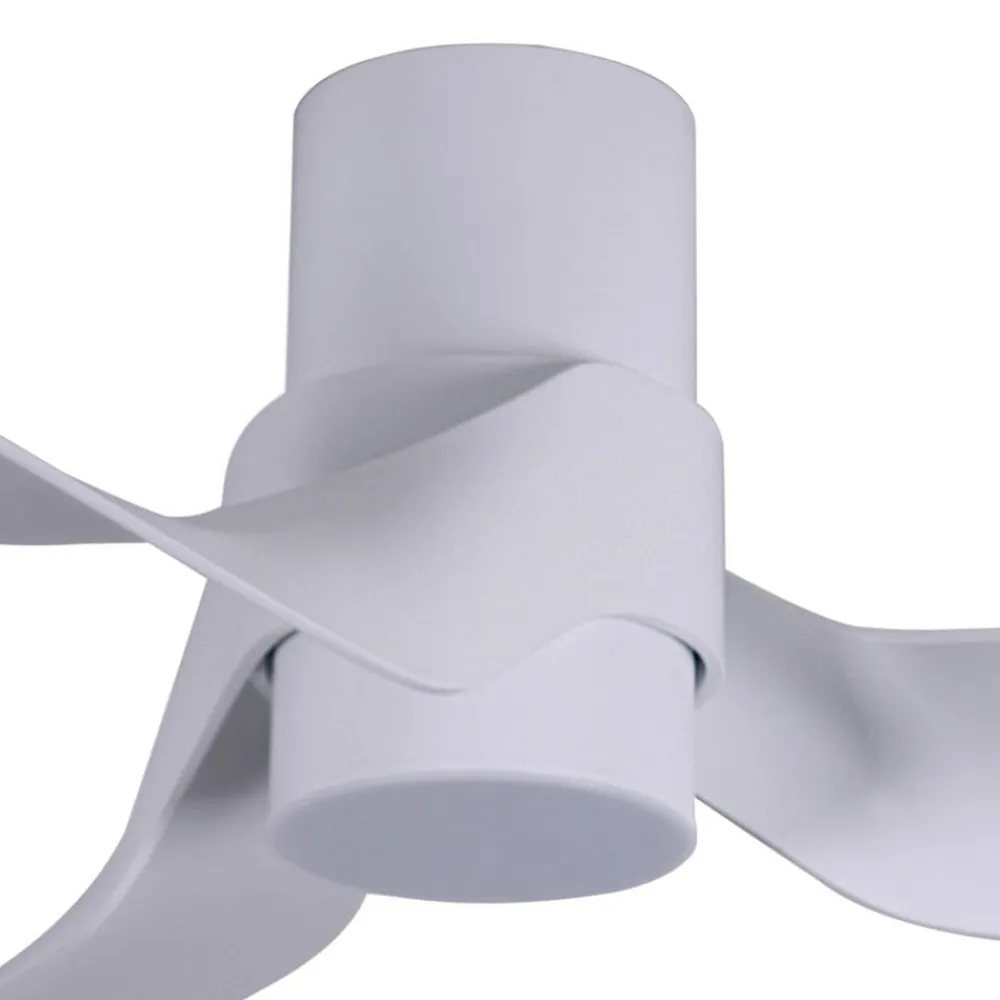 Trebladet loftsventilator Nautica med dæmpbart LED-lys Med sine tre store, brede vinger af ABS-plast skaber Nautica en fremragende luftfordeling og er velegnet til rum på op til 32 m². Der er seks justerbare hastigheder og en sommer/vinter-funktion. Inkl. fjernbetjening. Integreret dæmpbart LED-lys. Inkl. LED-lampe (GX53-sokkel) Funktioner En meget stille DC-motor sikrer, at Nautica-loftventilatoren cirkulerer luften næsten ubemærket. Seks hastigheder kan vælges med fjernbetjeningen, som også kan bruges til at skifte fra sommer- til vintertilstand. Nautica er udstyret med et lys, der er udstyret med en LED-lampe med en GX53-sokkel. Lysstyrken kan dæmpes i tre trin, så den passer til personlige behov. Lyskilden er inkluderet. Tekniske data – Økonomisk DC-motor installeret – Wattforbrug: maks. 30 W/min. 2 W – 6 hastigheder: 165/143/120/95/72/48 rpm – Cirkuleret luftmængde: 212 m³ – Standby-effekt: 0,5 W – Minimum installationshøjde: 2,3 m