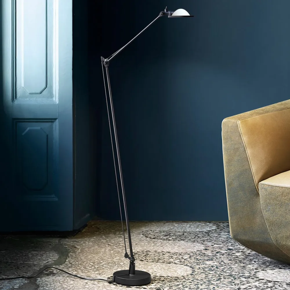 Luceplan Berenice gulvlampe med farvet reflektorpære Den er yderst funktionel og ret enkel i sit design. Eksteriørets enkelhed er dygtigt parret med en meget god og gennemtænkt funktionalitet. Berenice gulv- og læselampe er udstyret med fleksible leddelte arme. Lampehovedet, som også kan flyttes og drejes, er udstyret med en farvet reflektorpære. Lyset udsendes hovedsageligt direkte og spotlightes, uanset hvor lampearmen drejes. En del af lyset sendes forsigtigt ud i omgivelserne gennem reflektorpærerne. Tænd/sluk-kontakten er integreret direkte på hovedet.