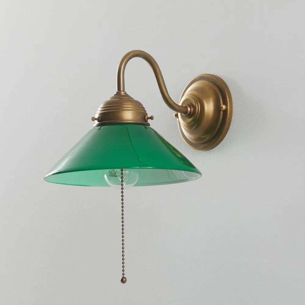 Berliner Messinglampen Væglamper|Væglamper>Væglampen KONRAD med grøn lampeskærm