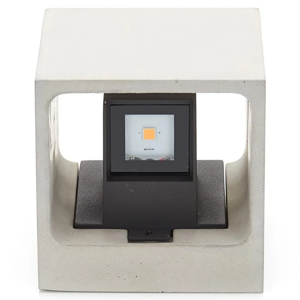 Riak har en terningformet lampekrop i grå beton, der bliver forvandlet til en lampe ved hjælp af de to fastintegrerede LED lyskilder. Selve lysskæret udsendes både opad og nedad. I omgivelser med en moderne arkitektur vil dette betondesign være fremragende, og man kan selvfølgelig også montere denne LED udendørs væglampe indendørs. Her vil den for eksempel være en fremragende lyskilde i et badeværelse, i særdeleshed hvis boligen er indrettet i en industriel stil.