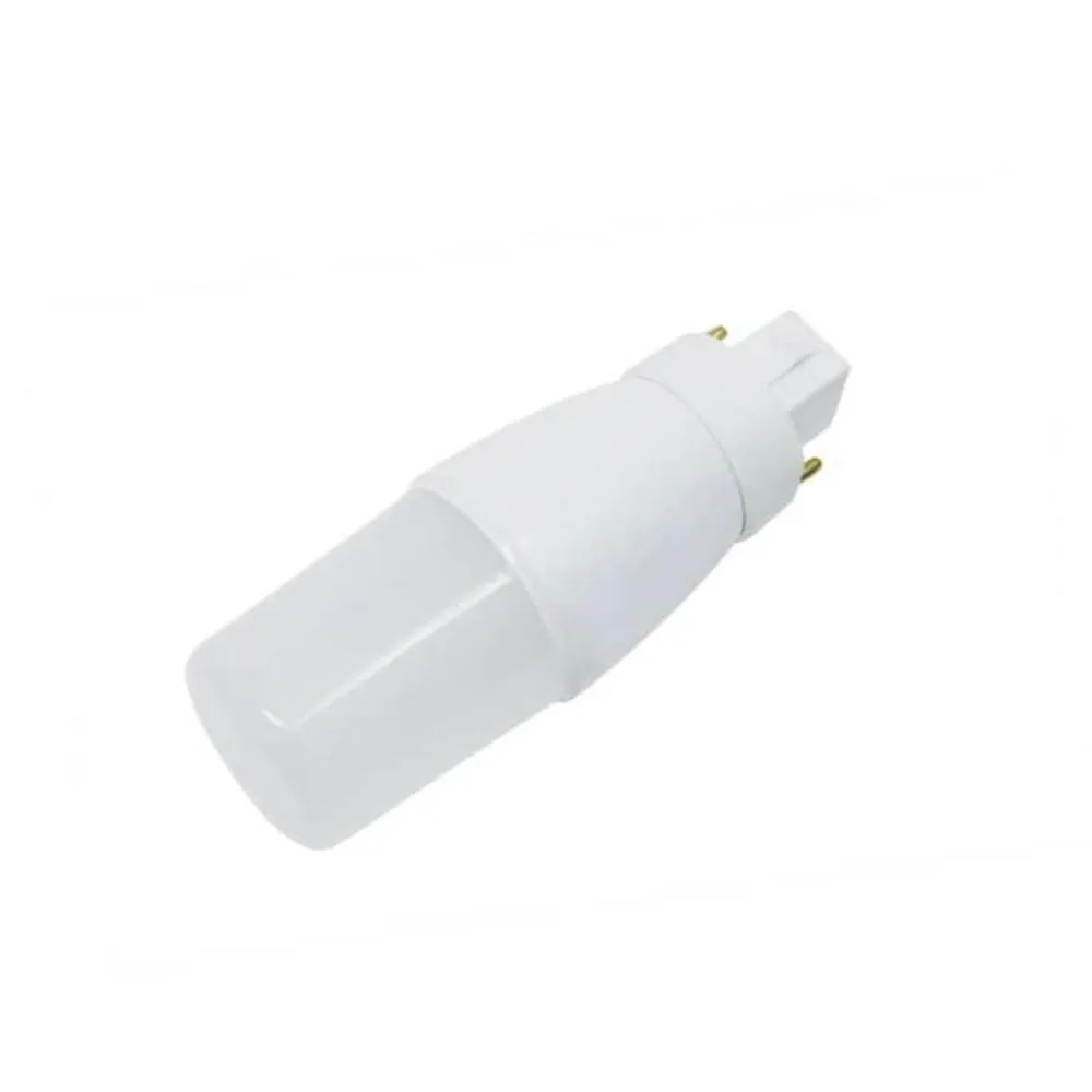 G24D 7W LED-lampe med en strålevinkel på 270° Denne LED-lampe fås i forskellige lysfarver og giver lys i op til 30.000 timer. Ud over den høje energibesparelse er den særlige egenskab universalsoklen, som betyder, at pæren passer i 3 forskellige fatninger: G24d-1, G24d-2 og G24d-3 – er energibesparende – kan ikke dæmpes