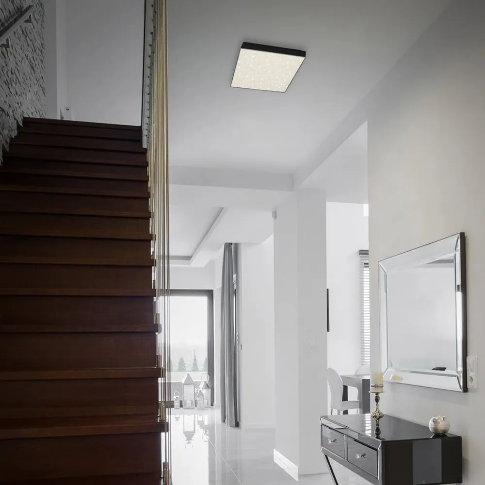 LED-loftslampe Flame Star, 21,2 x 21,2 cm sort