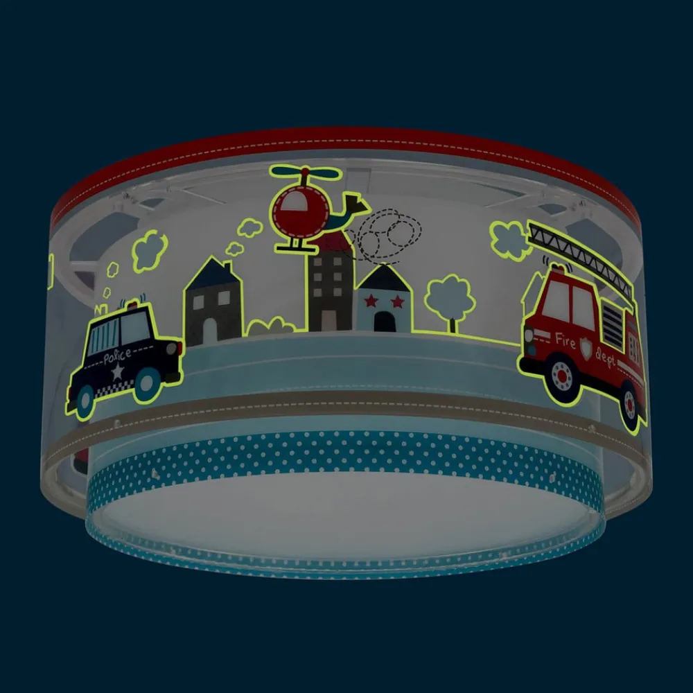 Dalber Police loftlampe, blå/hvid, Ø 33 cm