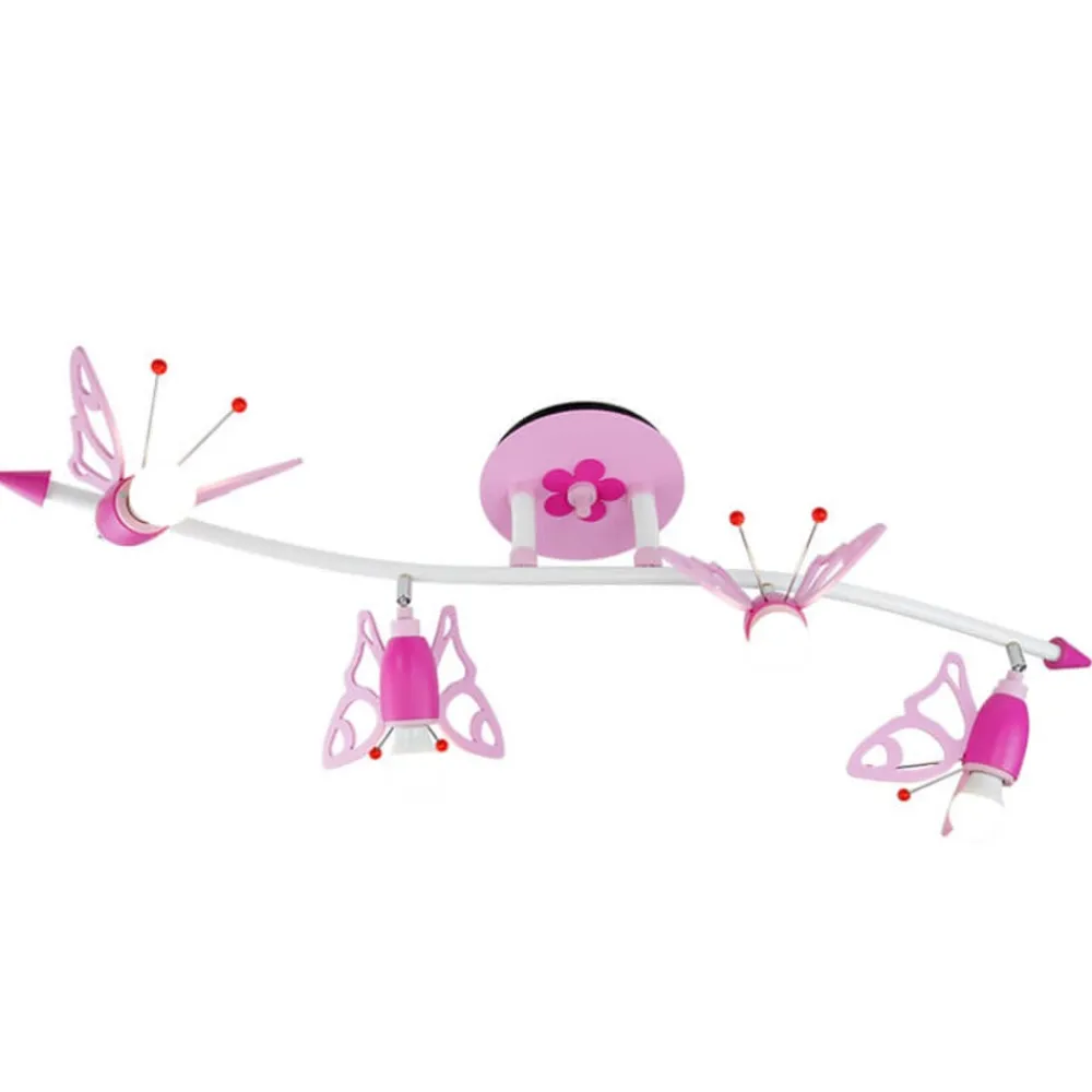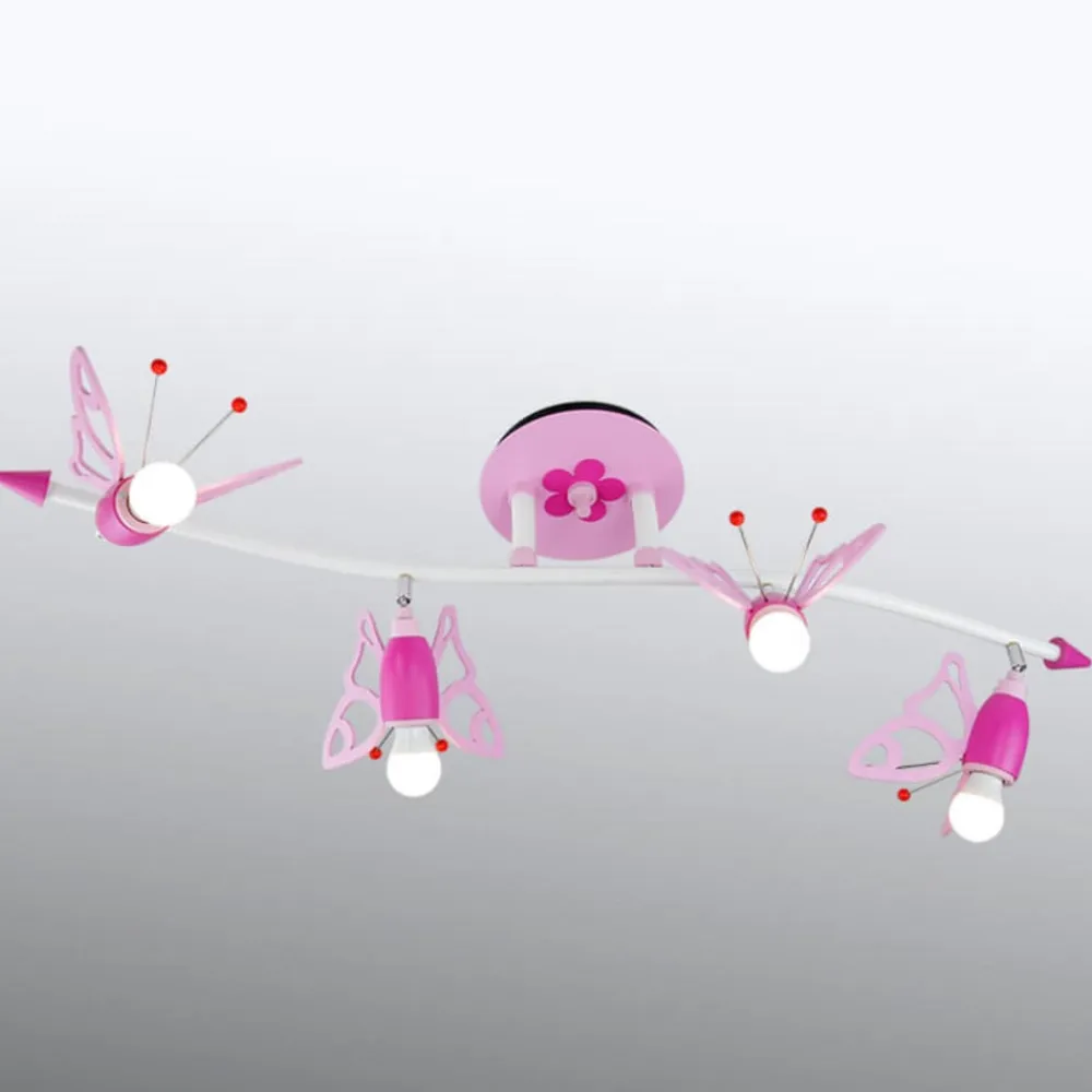 Loftlampen har gennemtænkt design. Der er et lille blomstermotiv, og alle fire spots er små sommerfugle. Så højt oppe svæver små sommerfugle til glæde for alle små prinsesser.