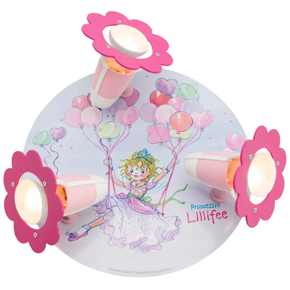 loftlampe prinsesse Lillifee’s motiv kommer fra børnebogserien med samme navn og er derfor et must for alle små Lillifee-fans. Prinsessen flyver lykkeligt med sine farverige balloner i loftet og sætter et smil på små pigers ansigter.