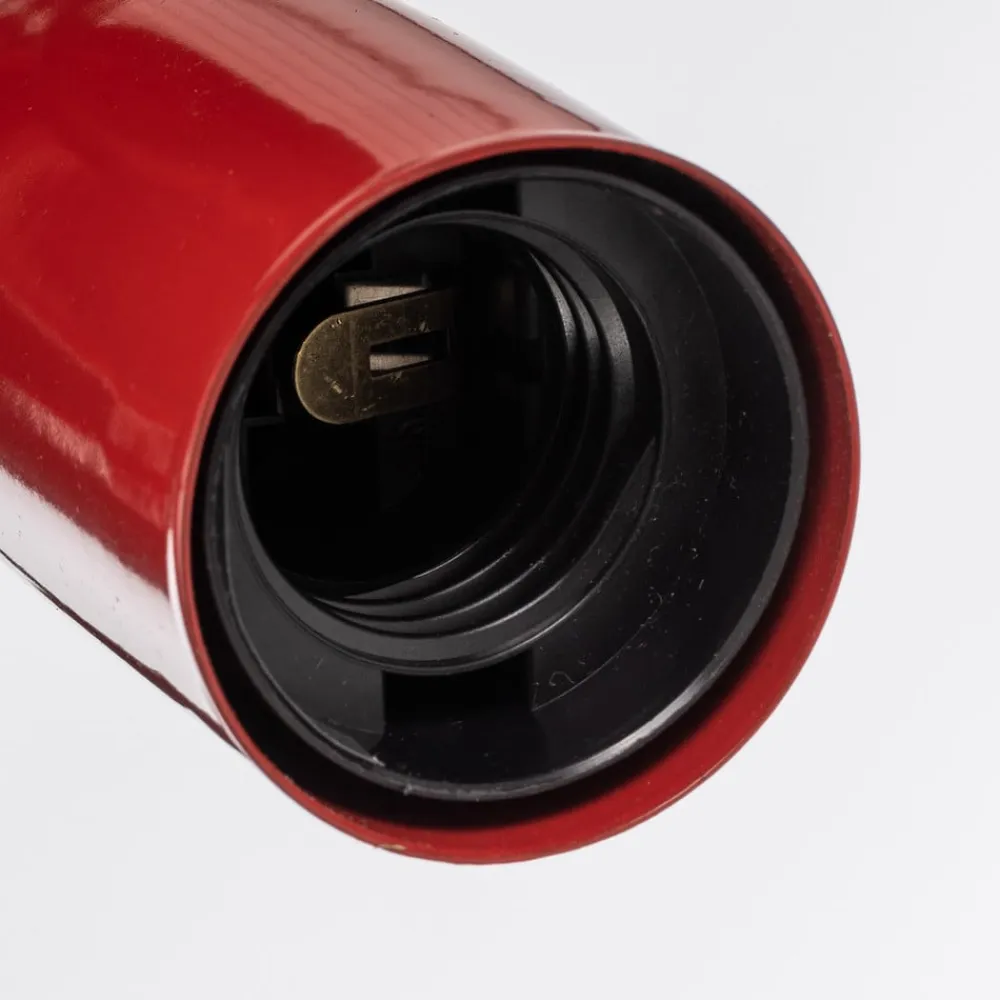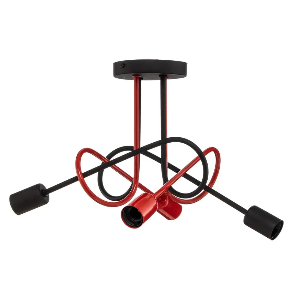 Cambridge loftslampen af jern er farverig og legesyg. Fra den sorte baldakin er der fire lampearme, der er drejet ind i hinanden og hver ender i en åben fatning. Dette giver stor frihed i valget af det lysmiddel, der skal anvendes (ikke inkluderet), og samtidig opnås en god belysning hele vejen rundt. Kombinationen af sort og rødt skaber et individuelt og kontrastfuldt design.