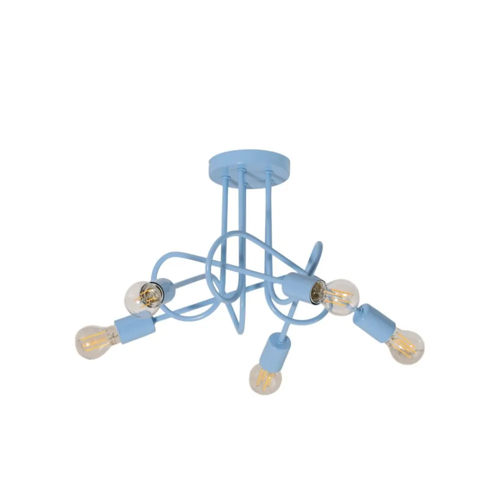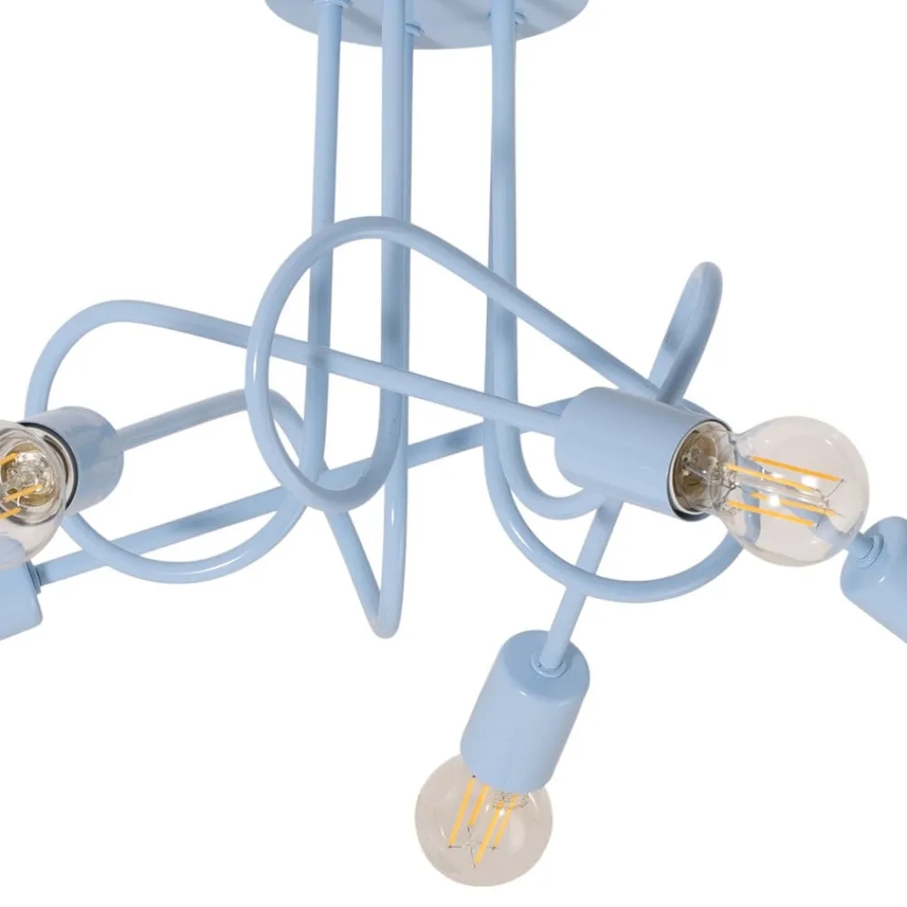 5 lyskilder Oxford loftlampe i lyseblå Oxford loftlampen i lyseblåt metal kombinerer stilfuldt design med funktionel belysning. De fem lampearme strækker sig fra den runde baldakin ned i rummet og peger i forskellige retninger, så selv store rum bliver oplyst fra alle vinkler med denne loftlampe. Oxford-loftlampen er udstyret med en standardiseret E27-fatning, så LED-lyskilden nemt kan udskiftes, hvilket bidrager til et effektivt energiforbrug. Den robuste metalkonstruktion sikrer holdbarhed og passer harmonisk ind i forskellige indretningsstile. Oxford loftlampen er derfor et ideelt valg for dem, der sætter pris på kvalitet og æstetisk variation.