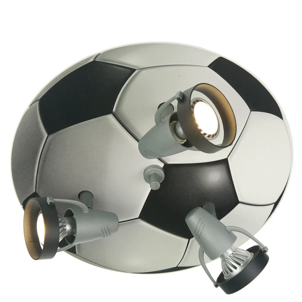 Den halvrunde, todimensionalt formgivede loftslampe Fußball, som er designet efter den runde bold af læder ser utroligt ægte ud. Tre projektører kan justeres og desuden drejes således, at forskellige områder i rummet kan oplyses direkte. En loftsprojektør, som vil glæde både små og store fodboldfans.