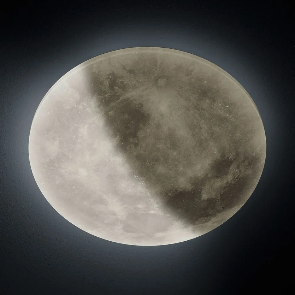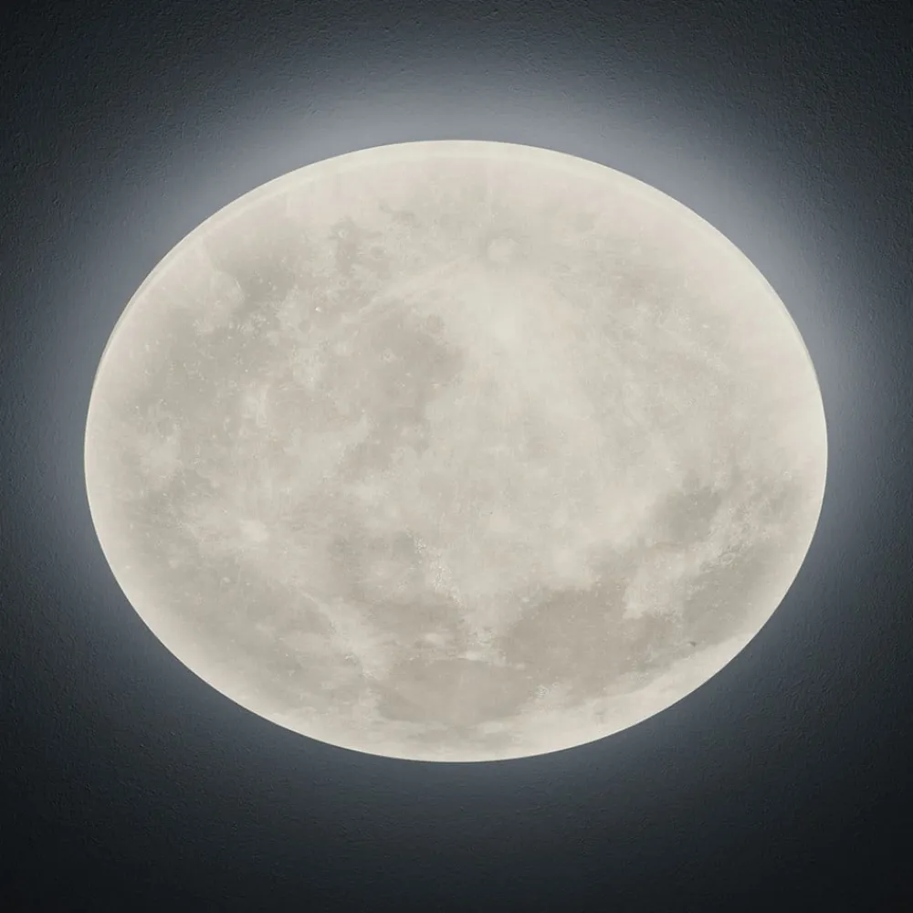 Cirkelrund som fuldmånen og minder også om månelandskabet strukturen på overfladen, sådan er LED-loftlampen Lunar designet. Den leveres med en infrarød fjernbetjening, som afgivelsen af lyset fra de integrerede, varmhvide LED’er bekvemt og fleksibelt kan styres med. Således kan man vælge forskellige månefaser på fjernbetjeningen (lyset stråler fra den ene side af lampen til den anden, cyklisk transformation – langsomt tiltagende lys, langsomt aftagende sænkning af lyse, lysets styrke kan reguleres, indstilles til natlysindstilling eller på 100 % lysstyrke).