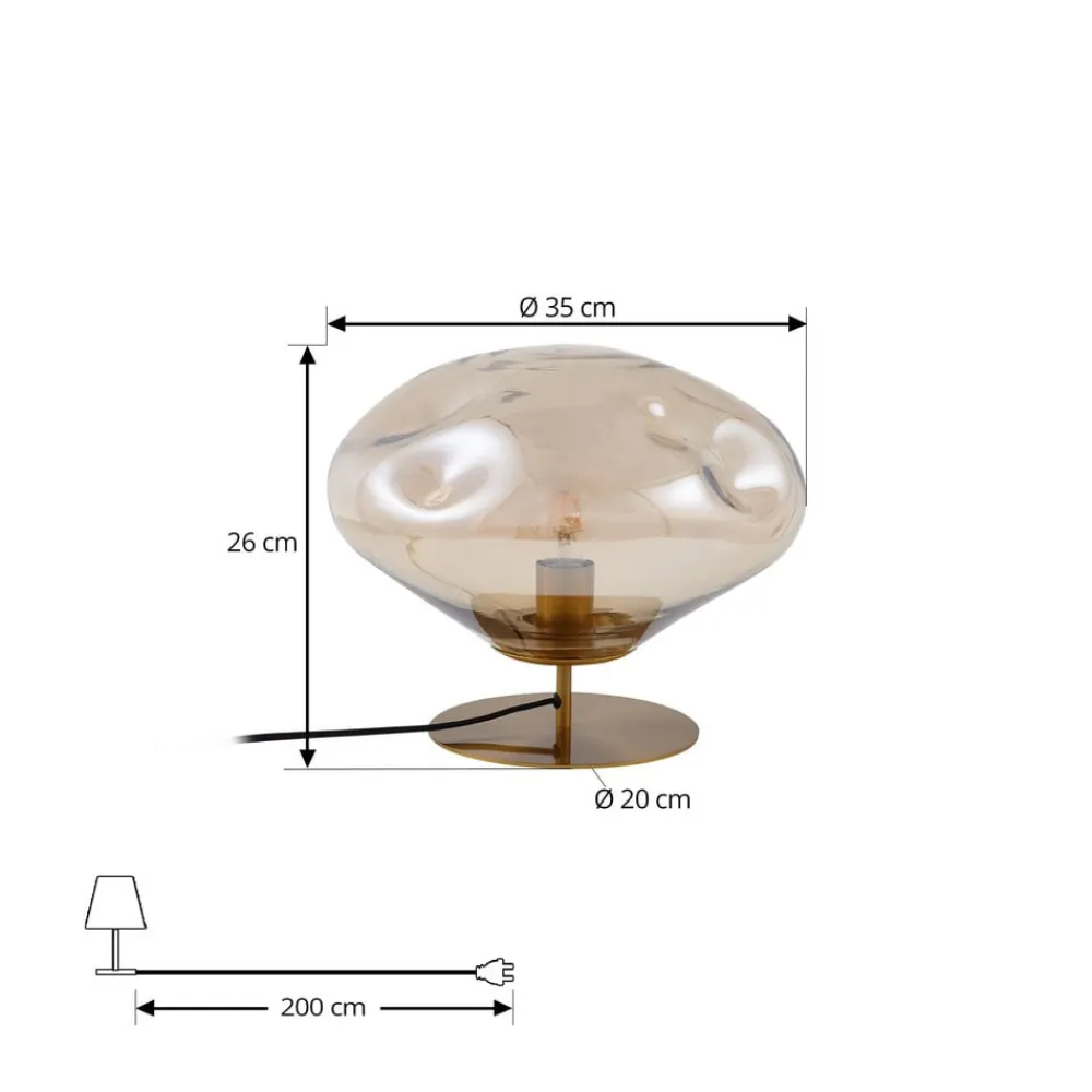 bordlampe Lelia, rav, glas, metal, Ø 35 cm^Lindby