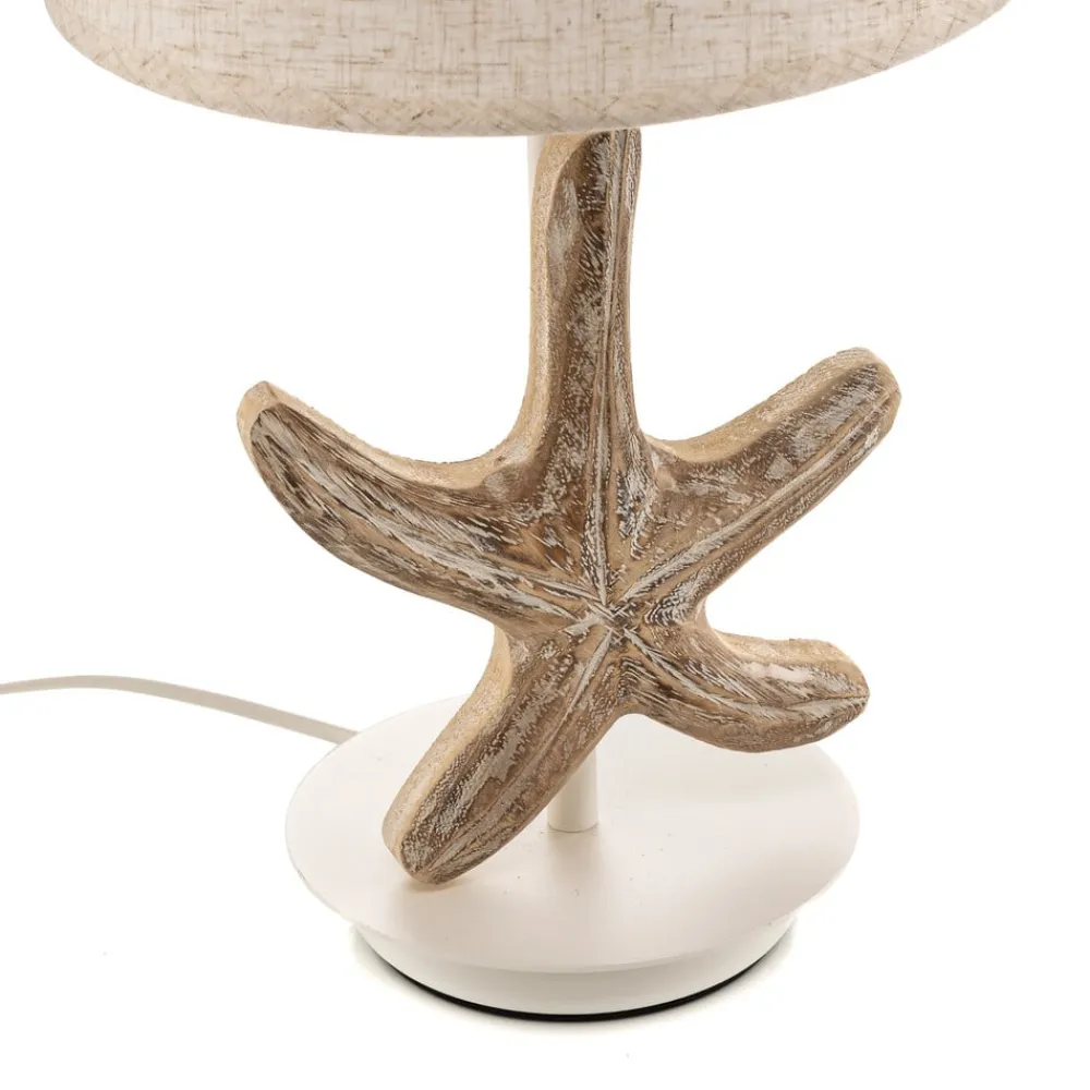 Bordlampen Stellina forener maritimt flair med funktionelt design. Stofskærmen med søstjernedekor giver ethvert rum et særligt præg og skaber en indbydende atmosfære. Denne lampe er fremstillet af en kombination af tekstil, metal og træ og tilbyder ikke kun visuel, men også taktil variation. Den cremehvide farve sikrer en harmonisk integration i forskellige indretningsstilarter, hvad enten det er i stuen, soveværelset eller spisestuen.