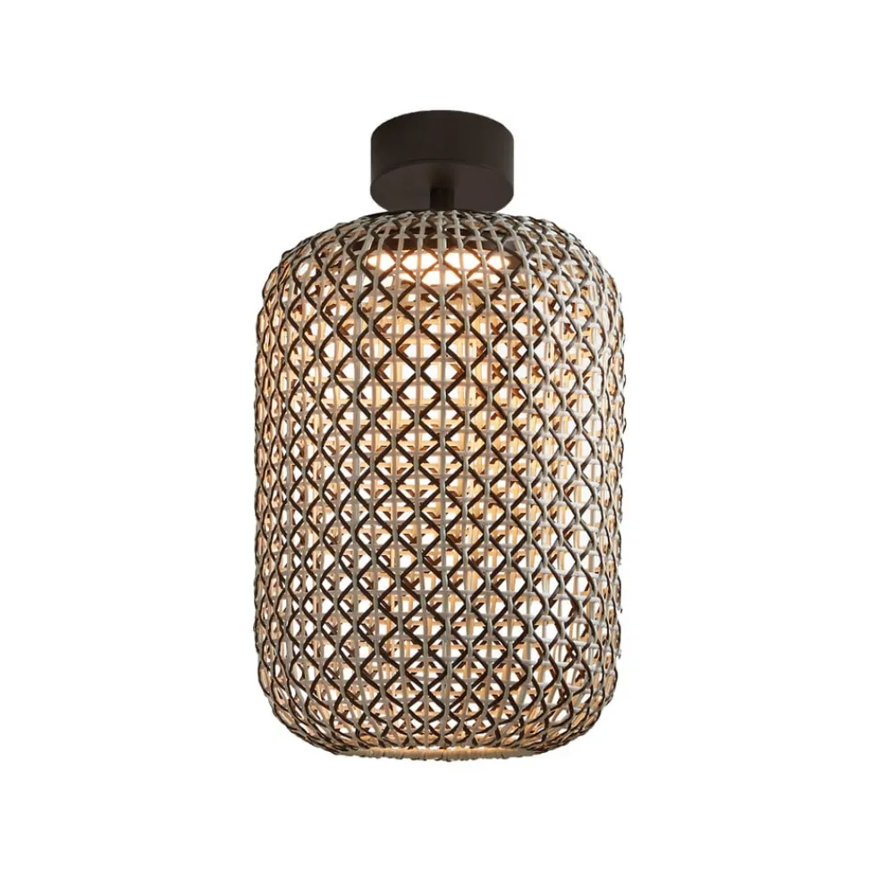 LED-loftslampe Nans til udendørs brug Armaturerne i Nans-serien er designet af Joana Bover, grundlæggeren af det Barcelona-baserede firma med samme navn. Med sine designs ønsker designeren at formidle letheden i Middelhavets livsstil. Nans-loftslampen har en skærm lavet af flettet stof, som består af syntetiske fibre. Beskyttelsesklassen IP54 beskytter lampen mod fugt og støv, så den uden problemer kan bruges udendørs, f.eks. i pavilloner, på terrassen eller altanen.
