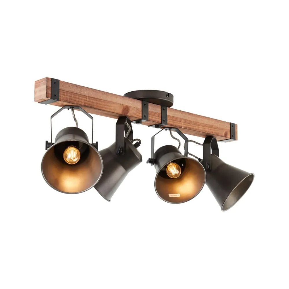Loftspot Decca, længde 78 cm, sort/træ, 4-lys.