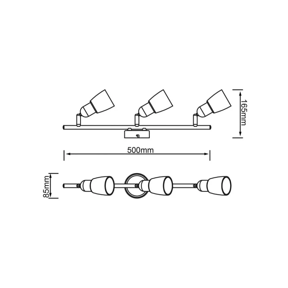 Sofia loftspot, jern/krom/hvid, længde 57 cm, 3-lys.