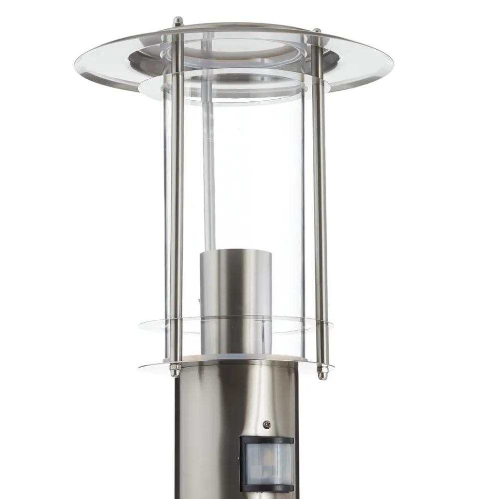 Denne moderne gadelampe i stål har et lige design med et slankt stel af lameller og stivere omkring lampekroppen i akrylglas. Den opfylder alle betingelser for IP44-beskyttelsesklasse og er velegnet til brug med LED-pærer. Bevægelsessensoren sikrer sikre skridt og kan indstilles i registreringsområdet samt i lysvarigheden.