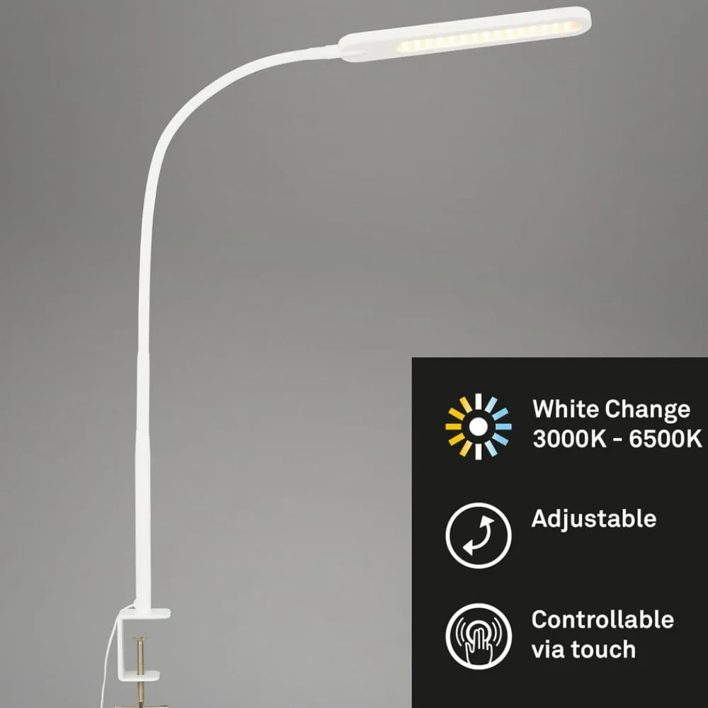 Briloner Arbejdsrum/Kontor|Bordlamper>Servo LED-klemmelampe, kan dæmpes, CCT, hvid