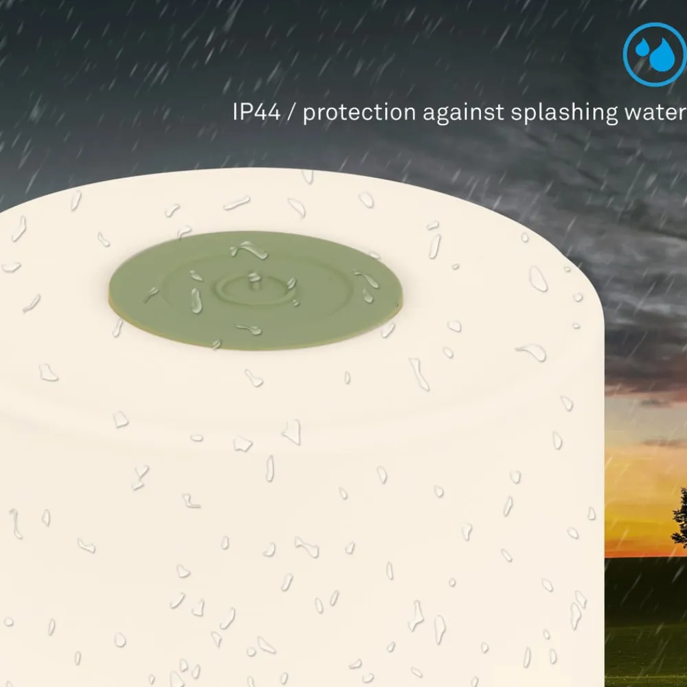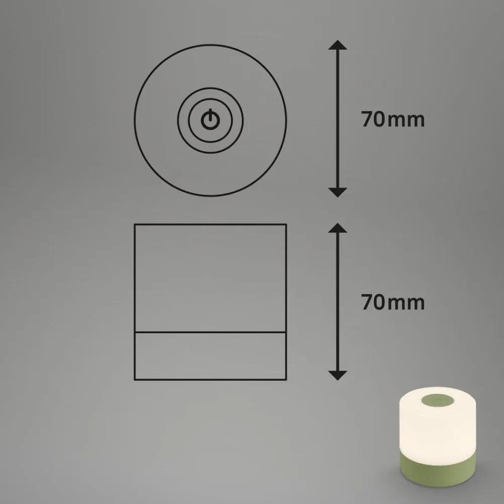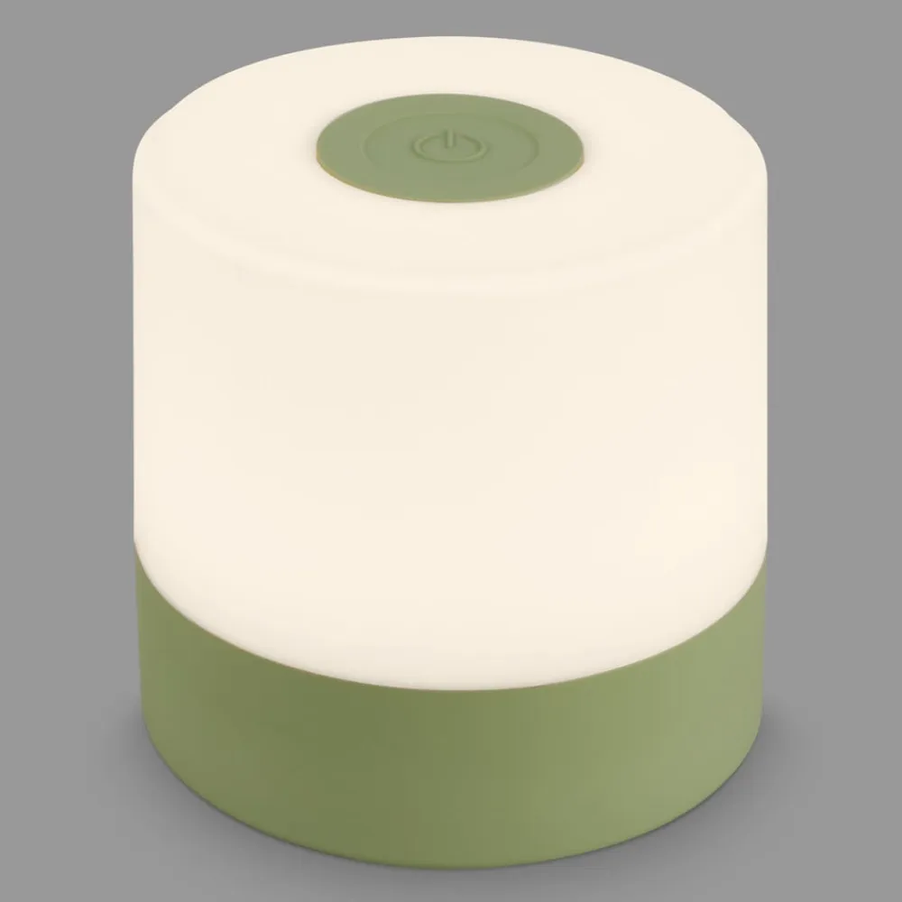 Kompakt LED-bordlampe 74610 med genopladeligt batteri og touch-dæmper, varm hvid (2.700 K)Den lille LED-bordlampe i cylindrisk form er udstyret med et genopladeligt batteri og kan derfor placeres fleksibelt overalt indendørs og, takket være beskyttelsesklasse IP44, også på terrassen eller i haven som en stemningsfuld lyskilde uden forstyrrende kabel. Batteriet kan oplades via det medfølgende USB-ladekabel (uden netadapter). Lampen tændes og slukkes via kontakten, der er integreret i lampens fod. Lyset kan skiftes til tre lysstyrkeniveauer (100 %, 50 % eller 20 % lysstyrke) via berøringskontakten på toppen af lampen ved gentagne berøringer af sensoren.