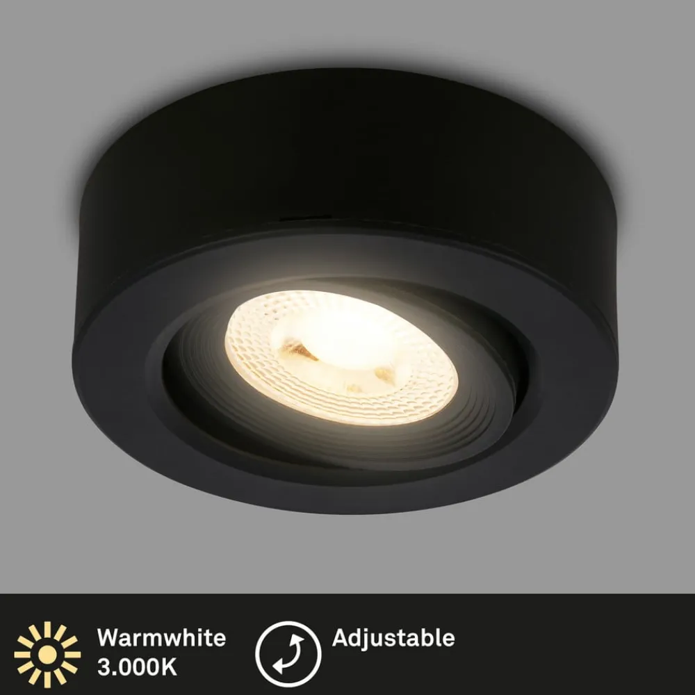 Briloner Desi indbygningslampe, sort, Ø9cm, tænd/sluk, 3000K
