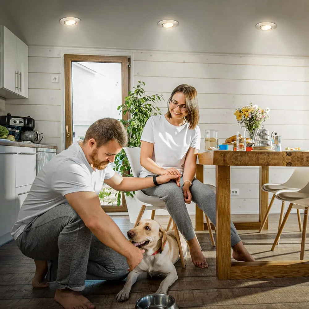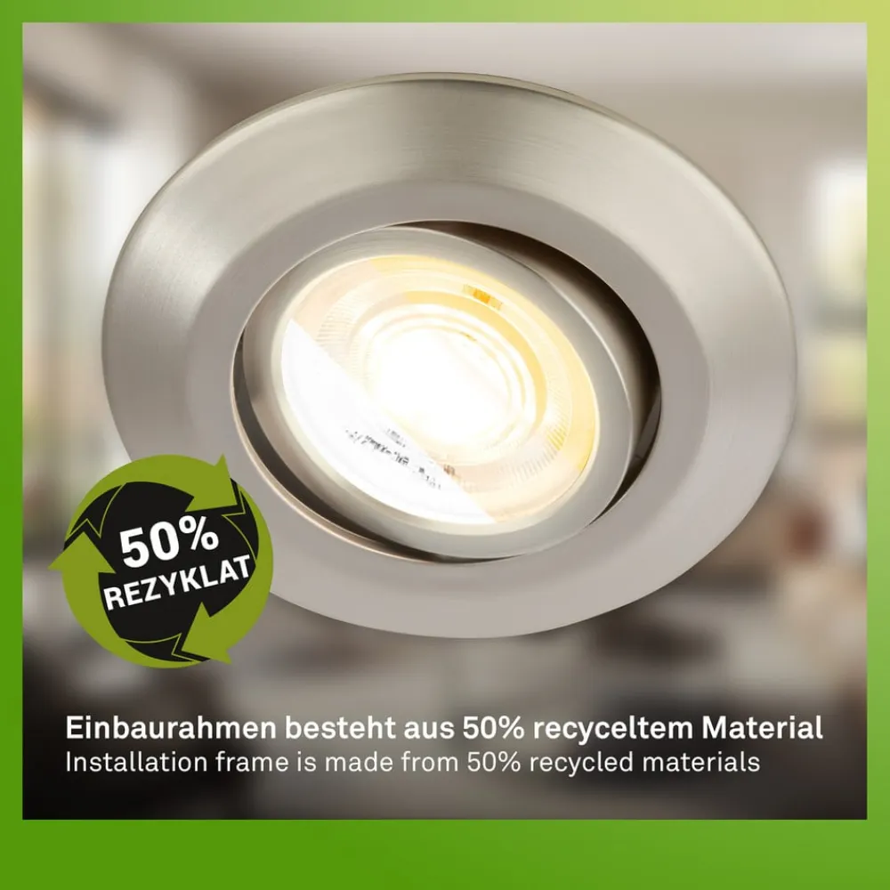 Fremstillet af genbrugsplast: dæmpbar Klira indbygningslampe i sæt med 3 stk. med justerbar lysfarve Oplev alsidigheden i indbygningslampen, som skaber stemningsfulde accenter i opholdsrum med sin drejefunktion og CCT-funktion. Den integrerede LED-lyskilde giver ikke kun en energieffektiv belysningsløsning, men også mulighed for at justere lysfarven (2.500 K, 3.000 K, 4.000 K) og lysstyrken. Uanset om det er i stuen, spisestuen, gangen eller soveværelset – dette moderne armatur i et sæt på 3 passer problemfrit ind i enhver atmosfære og gør det muligt at målrette lyset. Med sin bæredygtige emballage bidrager dette belysningssæt til et bevidst forbrug.