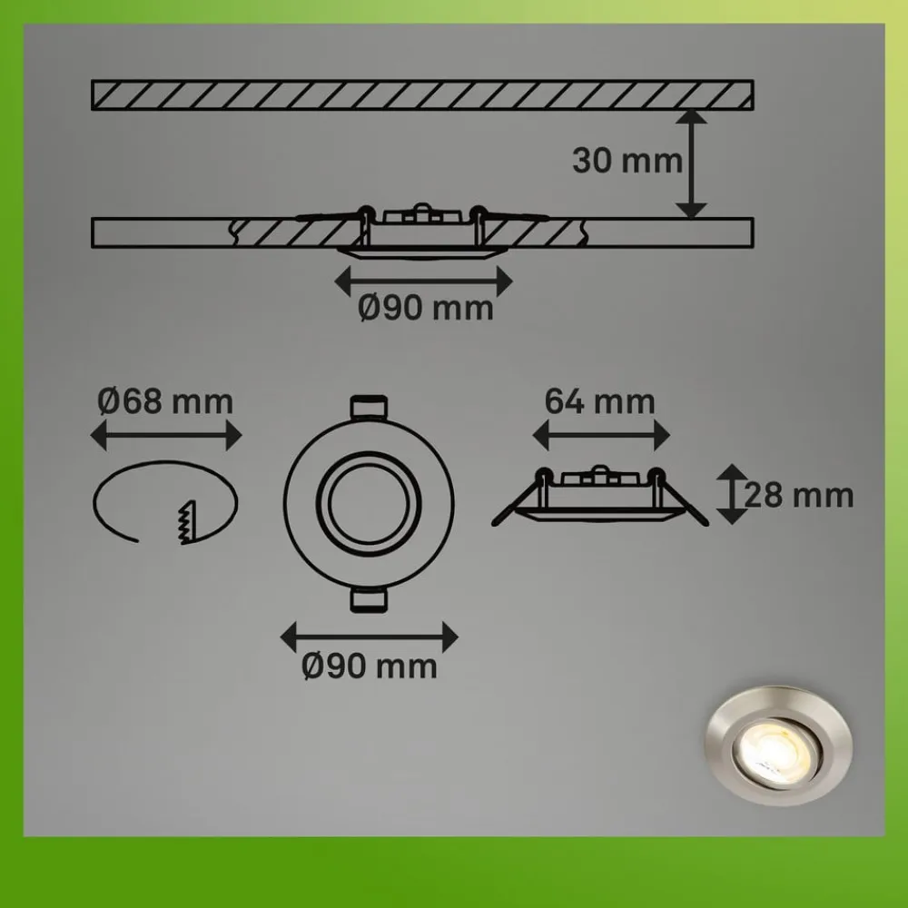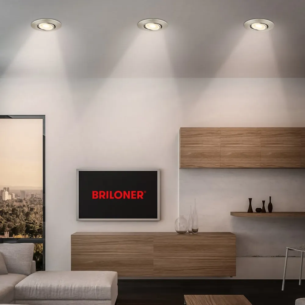 Vær den første til at anmelde “Briloner Indbygningsspots>Klira indbygningslampe, nikkel, drejelig, dæmpbar, 3 stk” Annuller svar