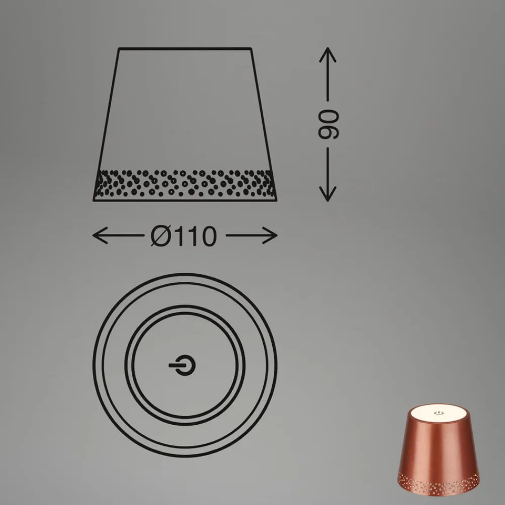 LED-batteri-flaskelys IP44 med lysdæmper, kobber