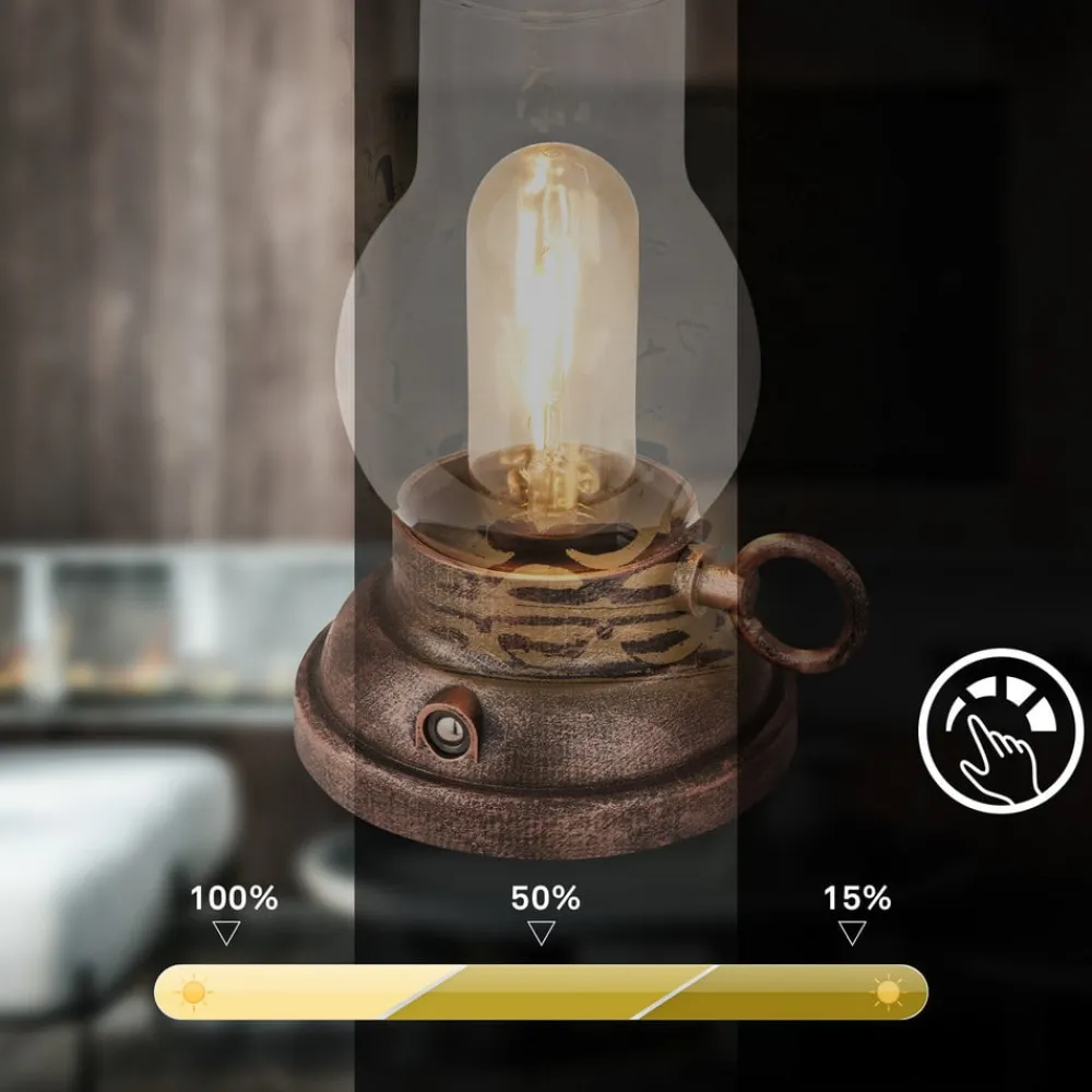 LED-bordlampe Brilo unplugged Kanea med tre-trins touch-dæmper