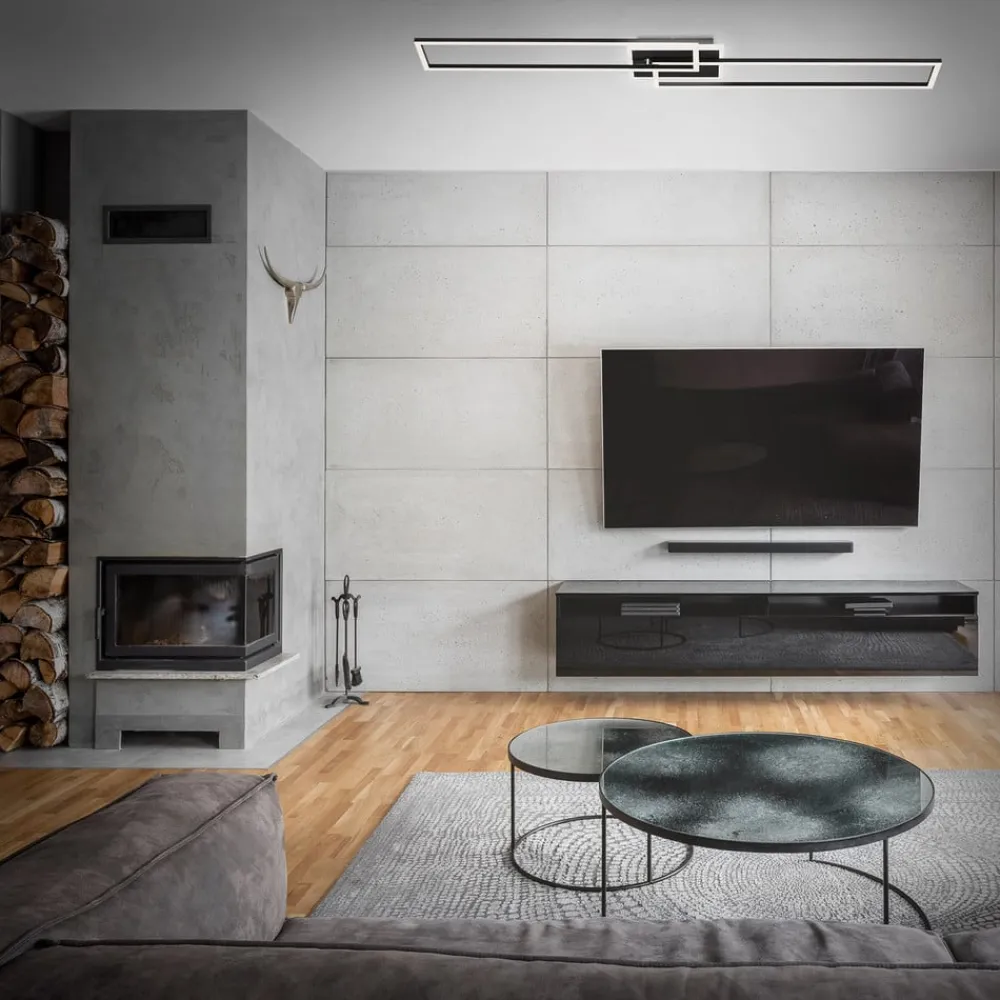 Andre funktioner i lampen er natlysfunktionen og den integrerede timer. Armaturet kan betjenes bekvemt med den medfølgende fjernbetjening. Med sit lineære og retlinede design kan Frame loftslampen kombineres perfekt med en moderne boligstil. Et særligt højdepunkt i armaturets design er den centrale belysning omkring baldakinen med baggrundsbelysningseffekt.