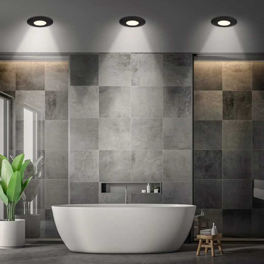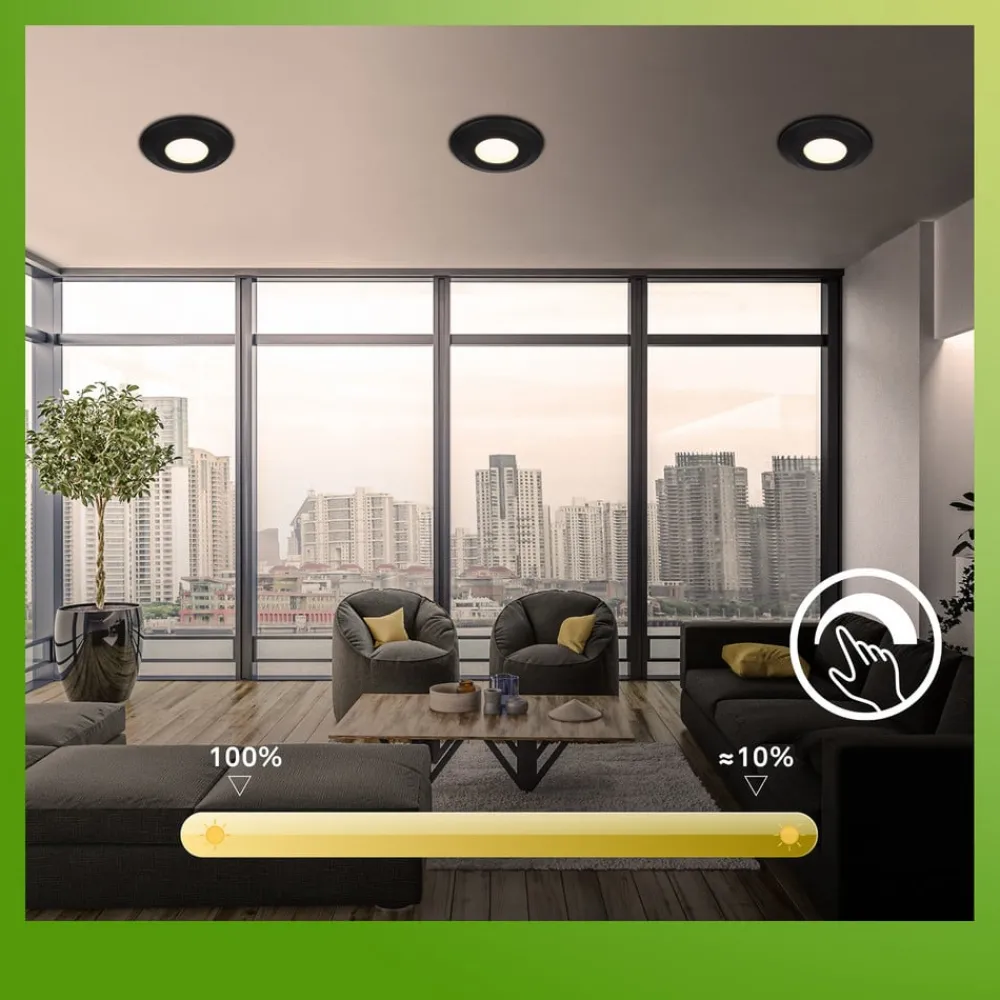 Briloner Loftlamper|Indbygningsspots>Klira indbygningslampe, sort, Ø 9cm, IP44, dæmpbar, 3 stk