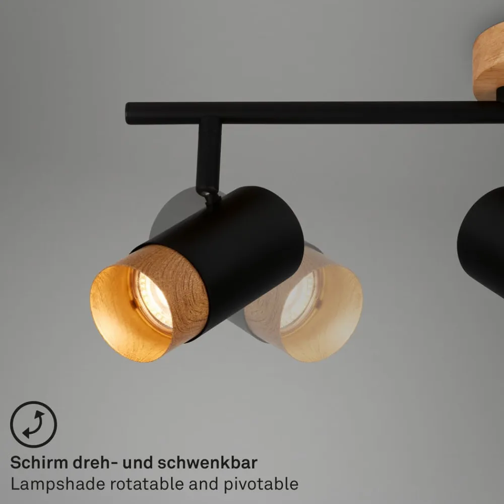 Plek loftspot GU10 sort/træ, 3 lyskilder