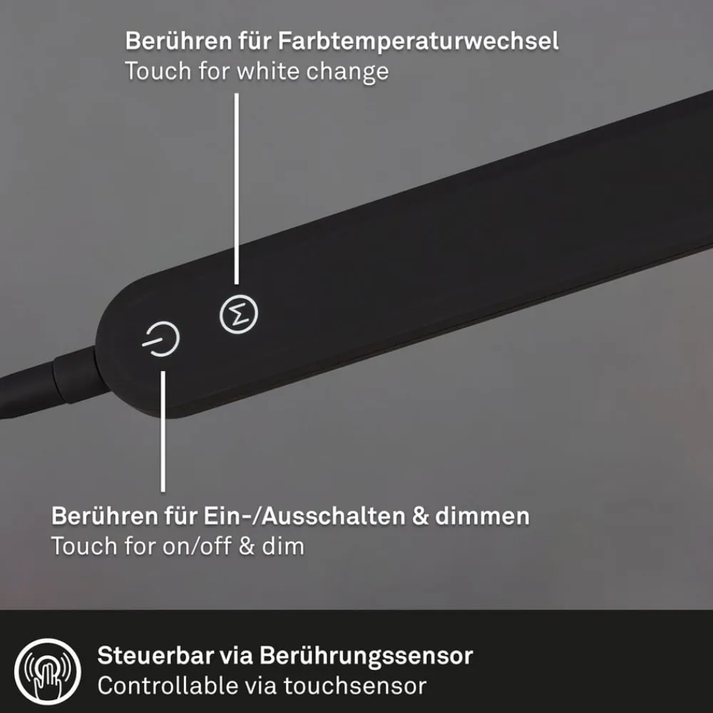 – Lysstyrken kan dæmpes i tre trin via touch-knappen: 100%, 50% og 25%
