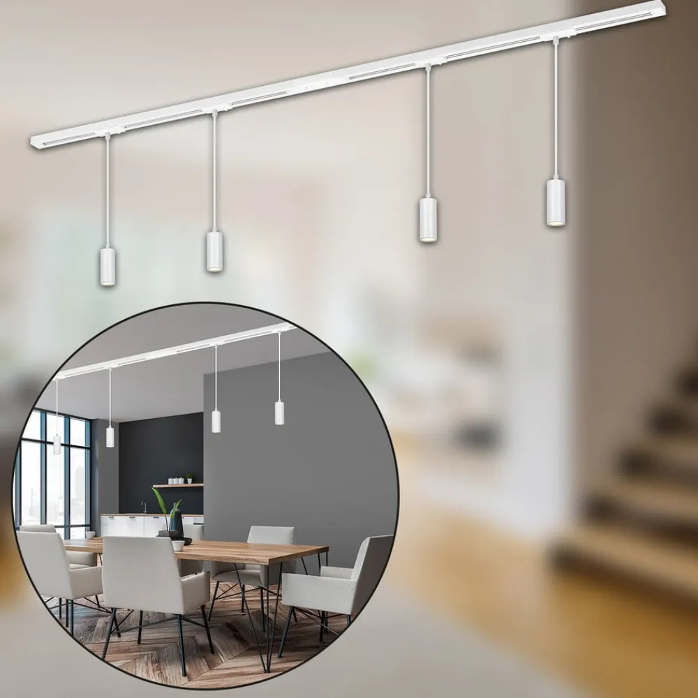 RAIL 230 V skinnesystem, hvid, 4 LED-pendler, længde 1,5 m