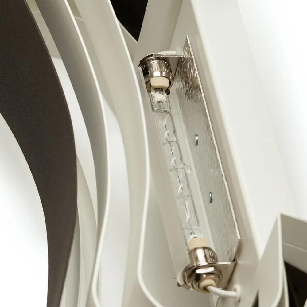 Skåret med laser og færdiggjort i hånden: væglampen Ionica Alene fremstillingsprocessen af denne lampe er noget særligt. Lasere bruges til at skære stålet til den rigtige form, før omhyggeligt manuelt arbejde fuldender designet. Resultatet er flere bånd, der griber ind i hinanden og skaber en ekstraordinær struktur. Dette adskiller klart dette belysningsprodukt fra andre. De to bageste bånd er i lys hvid, mens det forreste bånd har en anden, elegant metalfarve. Resultatet er en sensuel komposition, der giver et unikt præg til rum og korridorer – uanset om det er privat eller på f.eks. hoteller og restauranter.