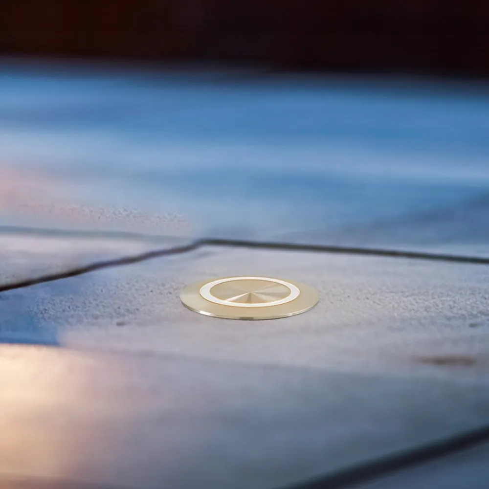 LED-gulvindbygningsarmaturet Hybride Mini fås her i en version med filigran, ringformet lysudstråling. Den opalhvide, ringformede skærm er forsænket i det runde hus af V4A rustfrit stål. Denne er også fremstillet af specielt, modstandsdygtigt krom-nikkelstål af rustfrit kvalitet samt aluminium.