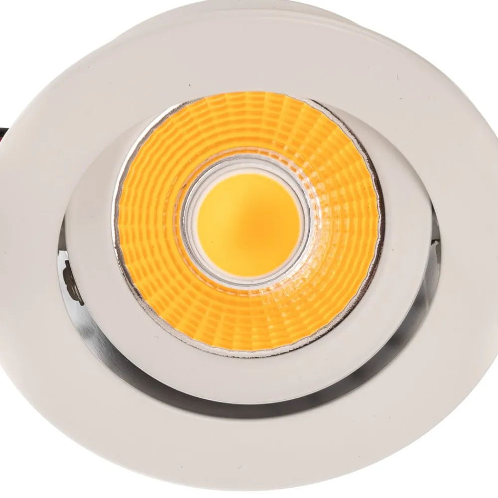Drejeligt LED-indbygningsspot i rund form Dette LED-spot er et moderne og fleksibelt downlight til loftmontering i hoteller og restauranter samt i private hjem. Installationen er værktøjsfri med to holdefjedre. Det runde armatur af aluminium har et hoved, der kan drejes hele vejen rundt, og er udstyret med varmhvide LED’er – Inkluderer ikke-dæmpbar LED-konverter – Udstrålingsvinkel: 38° – Drejeområde: 30° hele vejen rundt – Loftstykkelse: maks. 1,3 cm