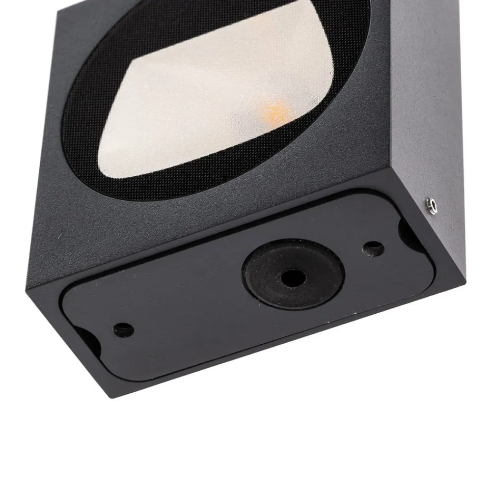LED-udenvægsarmaturet Quader giver direkte belysning til området nedenunder – perfekt til indgangspartier og adgangsveje ved siden af facaden. Det flade, terningformede hus er fremstillet af sort aluminium, og dækslet til LED’erne, som er beskyttet mod ydre påvirkninger, er fremstillet af glas.