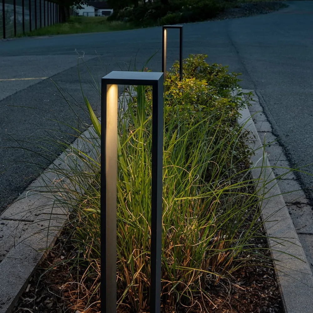 LED-udendørsarmaturet Trian er fremstillet af modstandsdygtigt aluminium og gennemsigtigt glas. På denne måde er den beskyttet mod vejrliget udendørs og er også beskyttet mod støv. Det moderne design ser elegant ud og afrundes behørigt af den strukturerede overflade. Derfor er dette stiarmatur også en sand pragt som et dekorativt eller designelement om dagen.