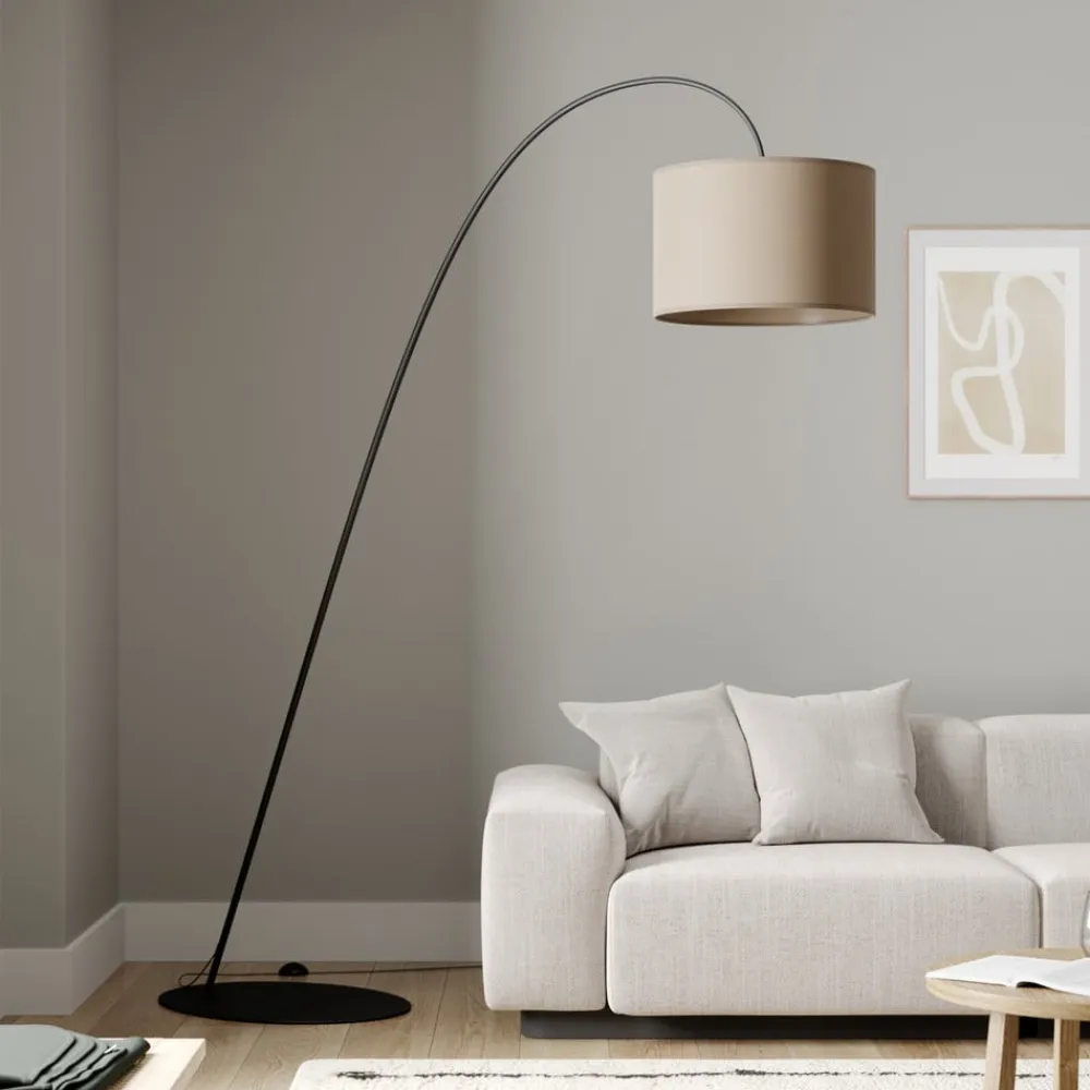Buelampen Alice med tekstilskærm i kaffefarve forener moderne design med funktionel elegance. Lampen er fremstillet af højkvalitetsstål og har en flot tekstilskærm, der passer perfekt ind i forskellige boligmiljøer. Kombinationen af mørkebrun og beige giver lampen en tidløs æstetik, der sætter prikken over i’et i både stuen og spisestuen.
