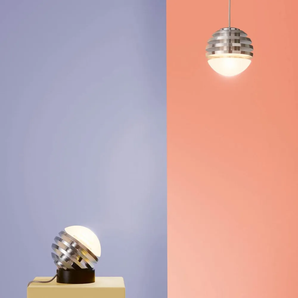 Bulo Micro sfærisk LED-pendel med touch-dæmper Oliver Niewiadomski designede denne ekstravagante pendel for belysningsproducenten Tecnolumen for at kombinere førsteklasses design med den nyeste teknologi. Bulo Micro-armaturet er en del af “Bulo”-serien, hvis udseende er kendetegnet ved en snoet aluminiumskrop, mens lyset kan glide gennem den satinbelagte lampeskærm. Det er kendetegnet ved brugen af materialer af høj kvalitet i kombination med den nyeste LED-teknologi. Den ønskede farveintensitet kan vælges ved hjælp af touchdæmperen, der er integreret i lampeskærmen.