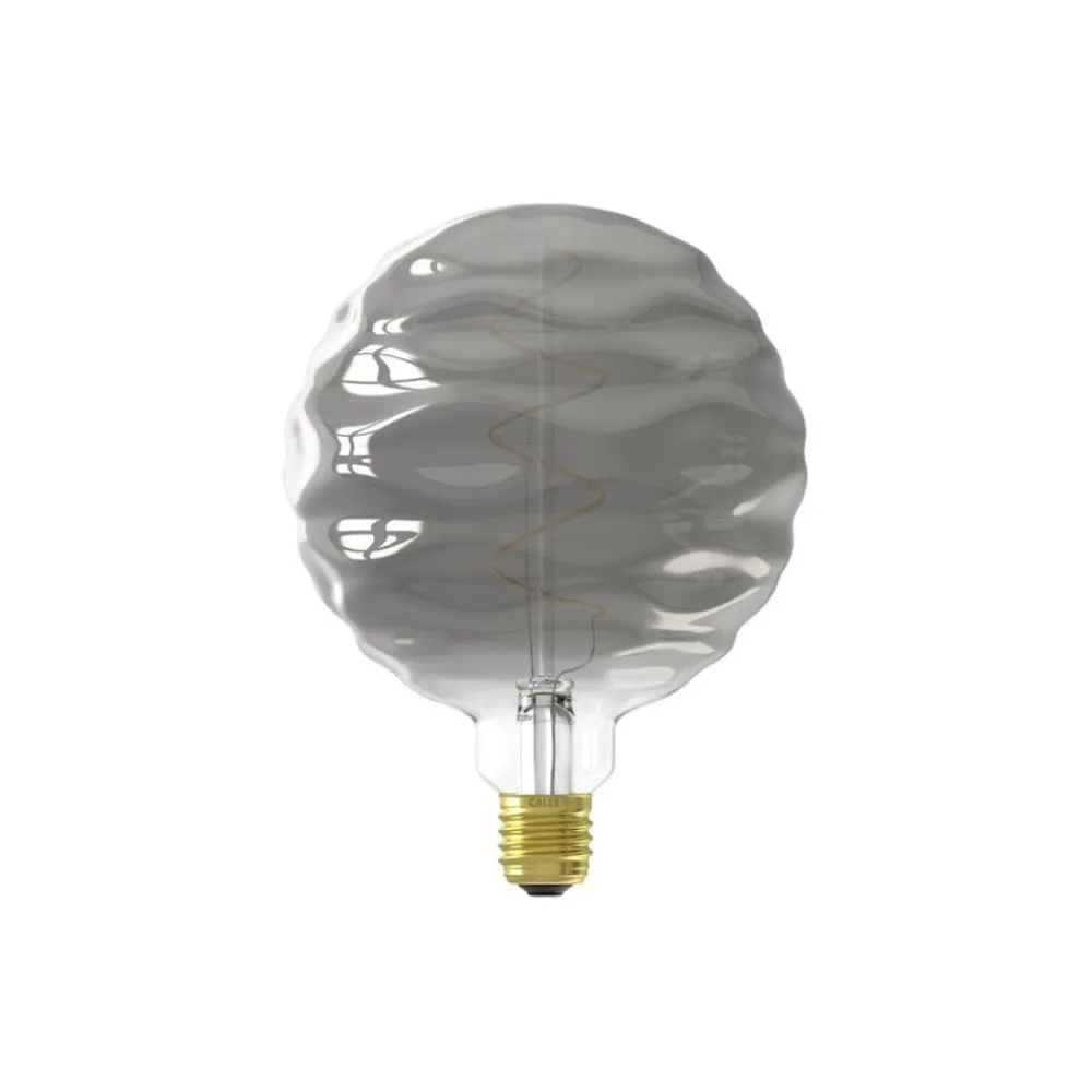 Dæmpbar LED-kuglelampe Bilbao, E27, 4W, 1.800 K, glasbelagtEn meget interessant effekt – ikke kun visuelt, men også med hensyn til lyseffekten – skabes af denne LED-lampe i kugleform med sin bølgede overflade og de indbyggede LED-glødetråde, der er arrangeret filigran i en spiralform. Bilbao kuglelampen fra Calex kommer til sin ret i ethvert armatur uden skærm og kan glimrende kombineres i flere stykker.