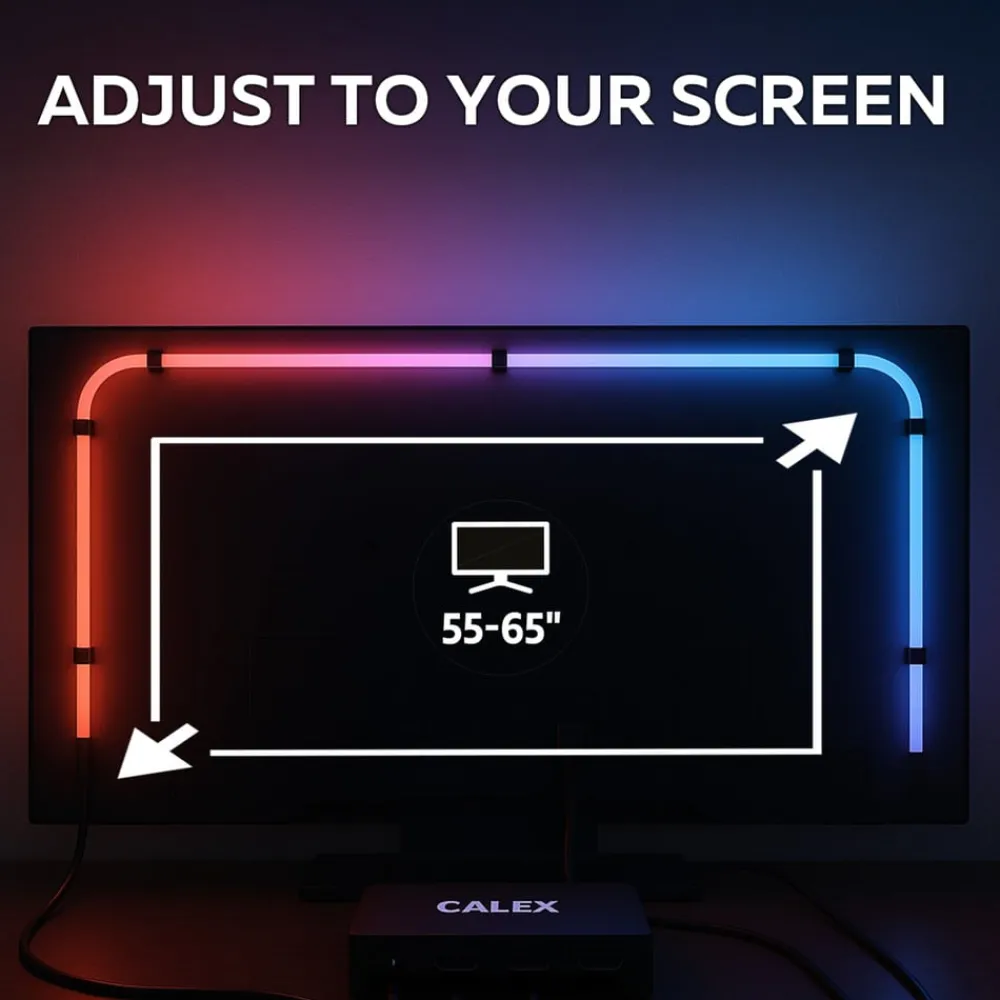 Calex Smart HDMI Sync Box Set med LED-strip kombinerer innovativ lysteknologi med et moderne design for at berige især skærme fra 50 til 70 tommer med afstemt atmosfæriske belysning. Den integrerede RGBW-funktion muliggør en imponerende farvevariation, der suppleres med varmhvidt lys (2.700 K). Den fast indbyggede LED-lyskilde sikrer en jævn og energieffektiv belysning. Takketvære den medfølgende dæmperfunktion kan lysstyrken justeres fleksibelt for at skabe den ønskede atmosfære. Den høje kvalitet af materialekombinationen af PVC, silikone og metal understreger produktets holdbarhed og stilfulde udseende.