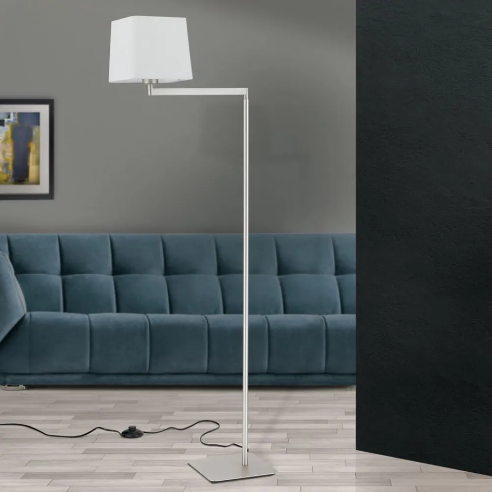Carlton tekstilgulvlampe, mat nikkel^ORION Hot