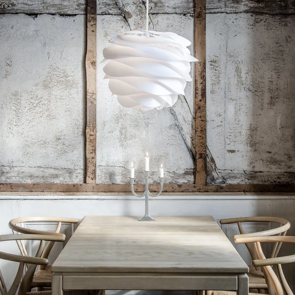 Lampeskærmen på denne hængelampe er lavet af polypropylen og polycarbonat og er ubrudelig. Dens design med rolige linjer er en hyldest til det bølgende klitlandskab langs Danmarks kyst. Carmina beriger ethvert naturligt indrettet miljø med sit nordiske, minimalistiske design og sin bløde, hyggelige lysudstråling.