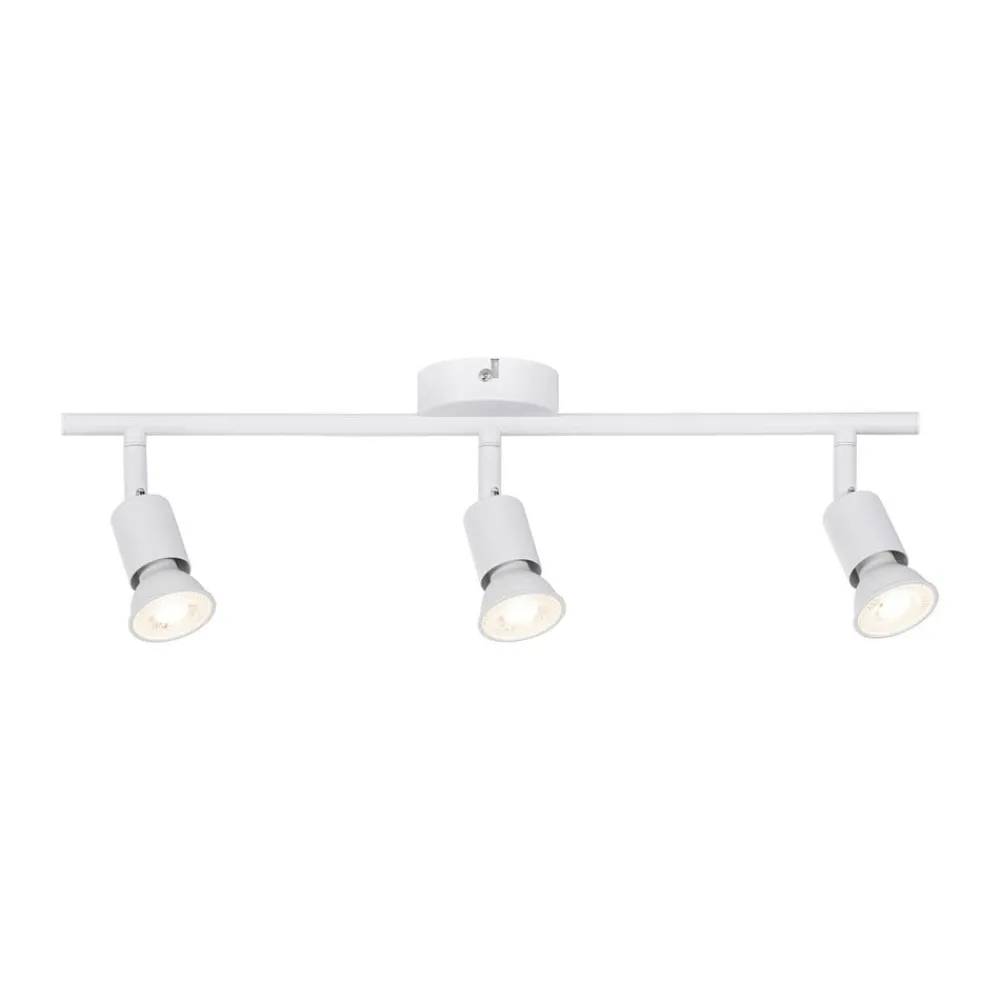 Carolina loftspots med tre lamper er den ideelle belysningsløsning til moderne stuer og soveværelser. Med sin matte, hvide lakfinish passer den til mange farver og indretningsstile i hjemmet. De tre lysspots er udstyret med GU10-fatninger, hvor alle typer reflektorlamper med en tilsvarende sokkel kan sættes i. Spottene kan drejes individuelt, så f.eks. den midterste spot kan levere grundbelysningen, mens de to yderste spots tager sig af den målrettede belysning og fremhævelsen af bestemte områder.
