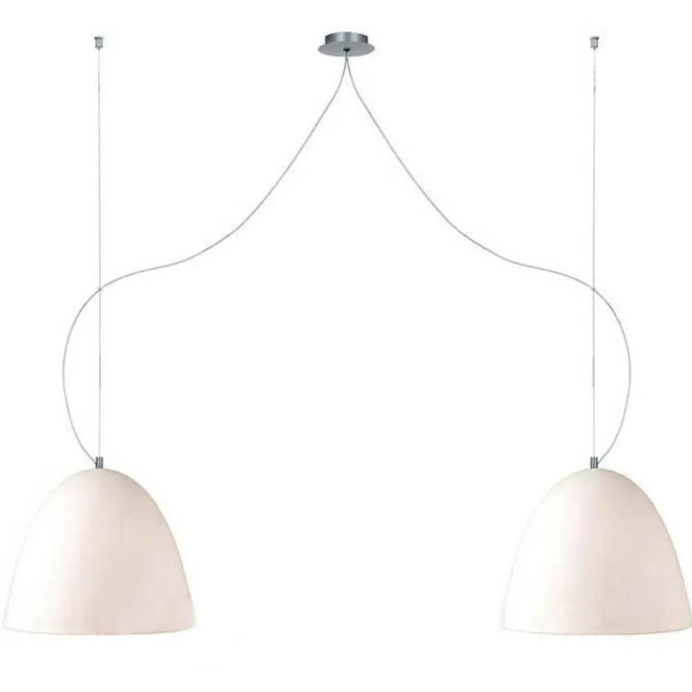 Pendellampen BELL med to lys. Klassisk elegance med en beroligende lyseffekt. Denne pendel udmærker sig ikke kun ved sin enestående glaskonstruktion. Med en så blid kurve, at den uundgåeligt har en beroligende effekt, er lampeskærmene designet til at inspirere med deres rige lysstyrke og upåklagelige evne til at integrere. Men en særlig behagelig lysatmosfære skabes af den lyseffekt, der kommer i spil, når dette armatur tændes og slukkes. Når BELL-pendlen er slukket, venter den i hvid elegance, indtil den tændes, hvilket får pendlen til at skinne i en sandfarve. Denne sandfarve skaber en særlig varm og behagelig atmosfære. Fæstet af børstet aluminium tilføjer endnu et element af høj kvalitet til dette produkt.BEMÆRK: Når du køber belysningsmidler, skal du være opmærksom på det maksimale wattforbrug for den respektive størrelse.Denne producent tilbyder armaturer, der er fremstillet i Tyskland og fremstillet i henhold til høje kvalitetsstandarder i en armaturfabrik, der har eksisteret siden 1980. Særlige og tilbagevendende karakteristika er brugen af glas, som hovedsageligt er mundblæst efter gammel tradition, og metaloverflader – for det meste aluminium – som er raffineret i hånden for at give dem deres specifikke udseende. I løbet af denne produktionsproces skabes armaturer, der altid har et moderne udseende og en meget individuel karakter.