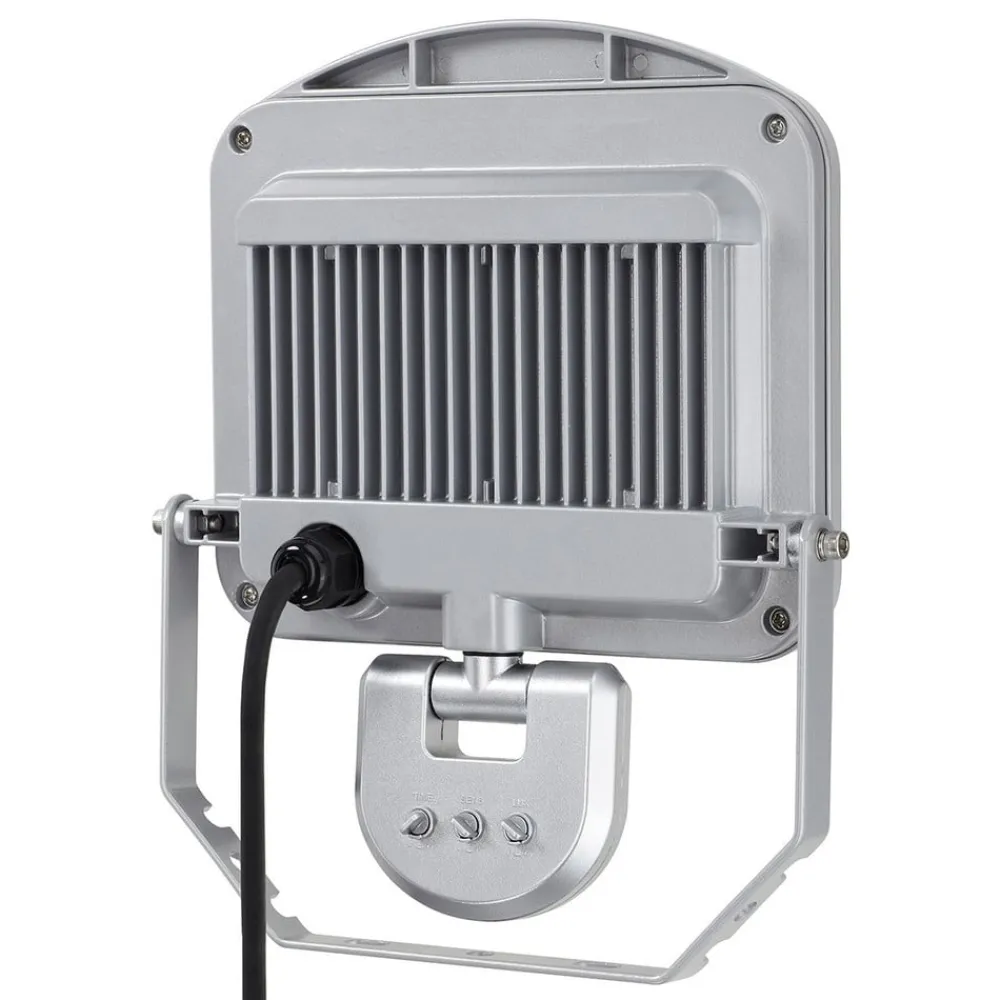 Sølv LED udendørs spotlight Charlottenburg lavet af støbt aluminium med IR-sensor