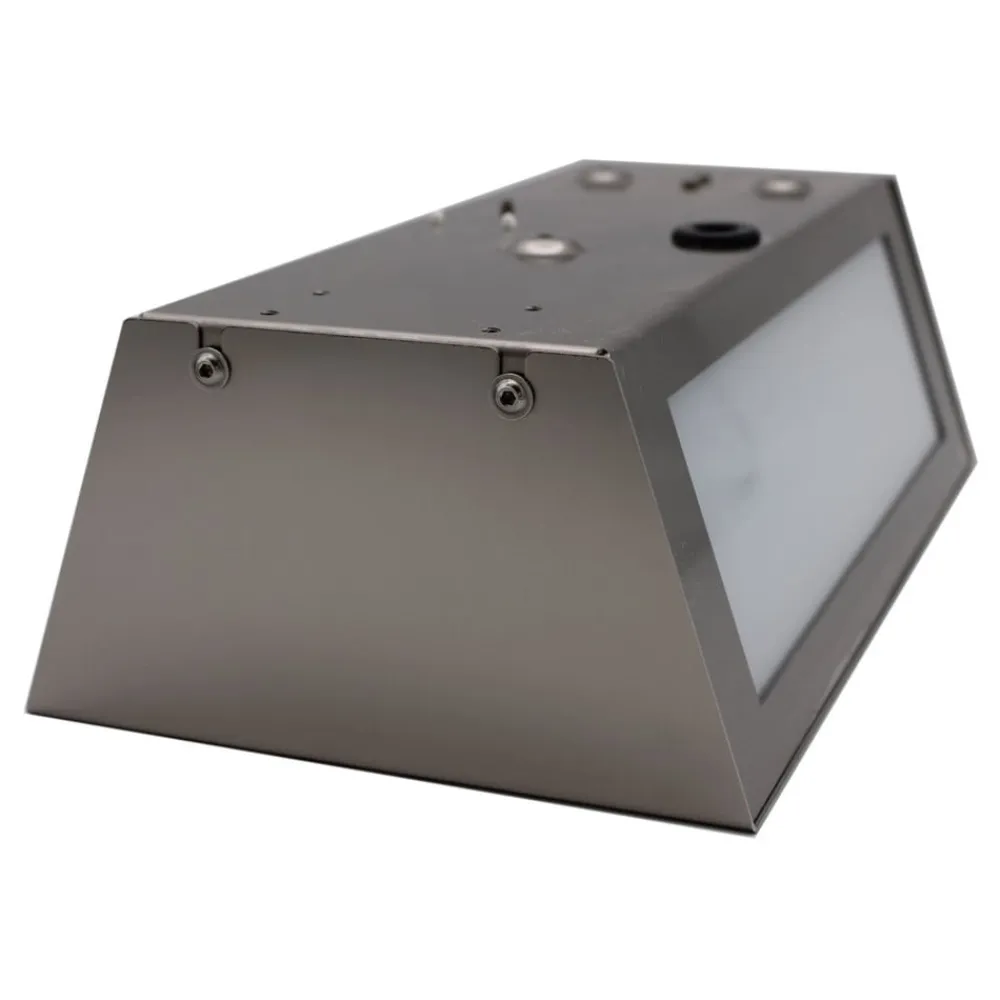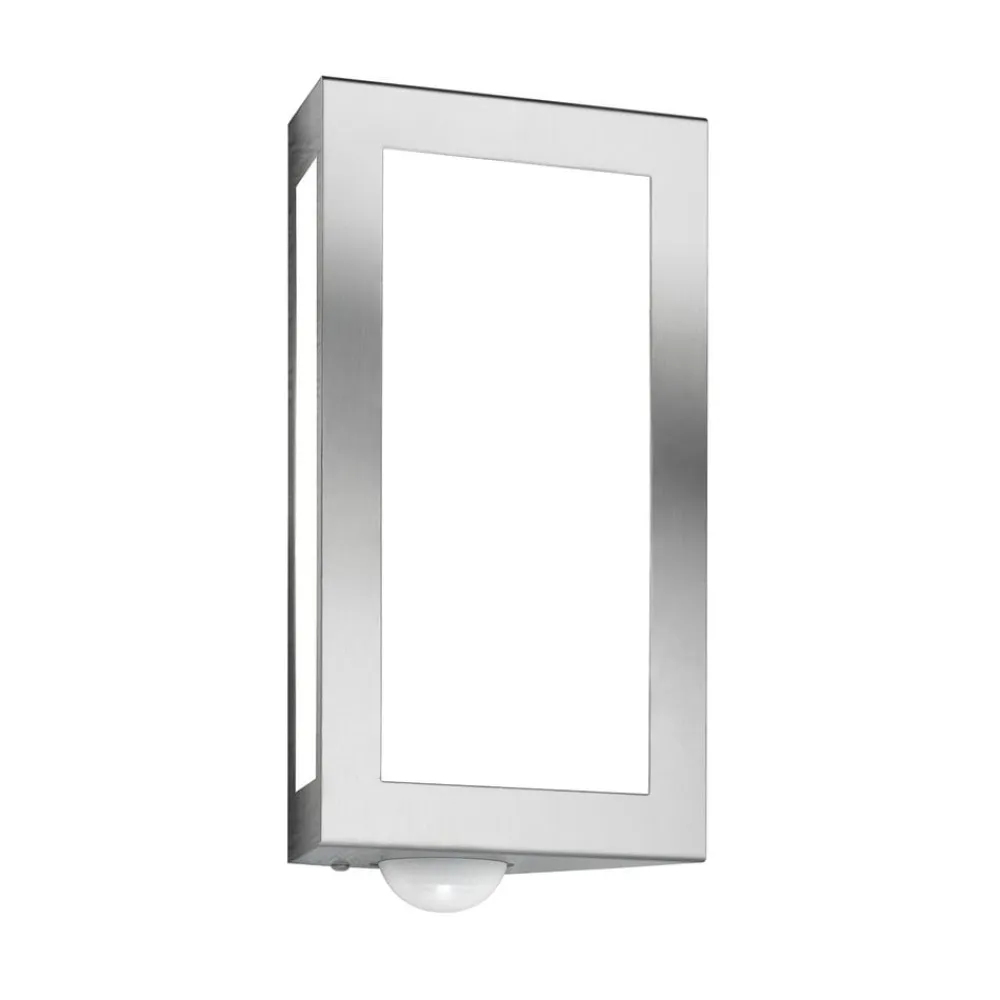 Kvadratisk udendørs væglampe Long i børstet stål med bevægelsessensor