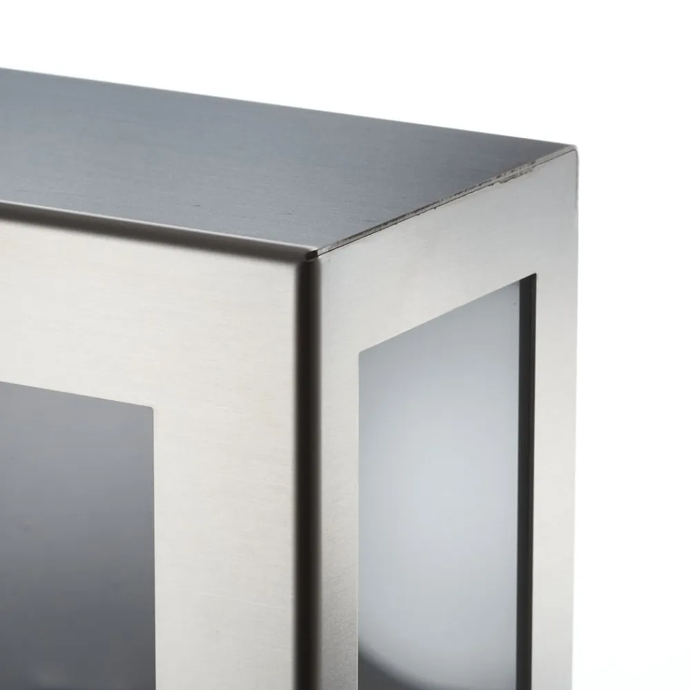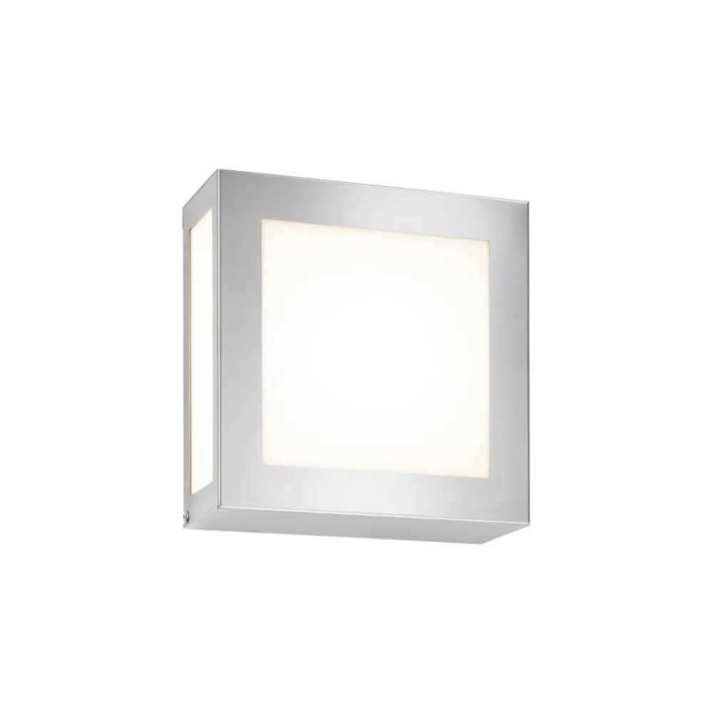 Den enkle firkantede form på udendørs væglampe Aqua Legendo Mini giver den et enkelt, diskret, men alligevel meget moderne udseende. Korpus er fremstillet af fint børstet stål, diffusoren foran og på siderne til venstre og højre er af opalglas. I dette glas er der indarbejdet en lysgennemtrængelig folie, så pæren ikke kan ses indefra, og der alligevel sikres et jævnt, blændfrit lys. Den udendørs væglampe afgiver lyset direkte fremad og til siderne, så den er meget velegnet til eksempelvis ved indgangen til huset. Takket være den integrerede PIR-sensor registrerer Aqua Legendo Mini desuden pålideligt bevægelser og tænder lyset direkte.