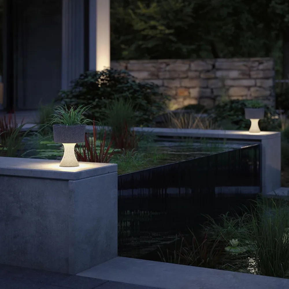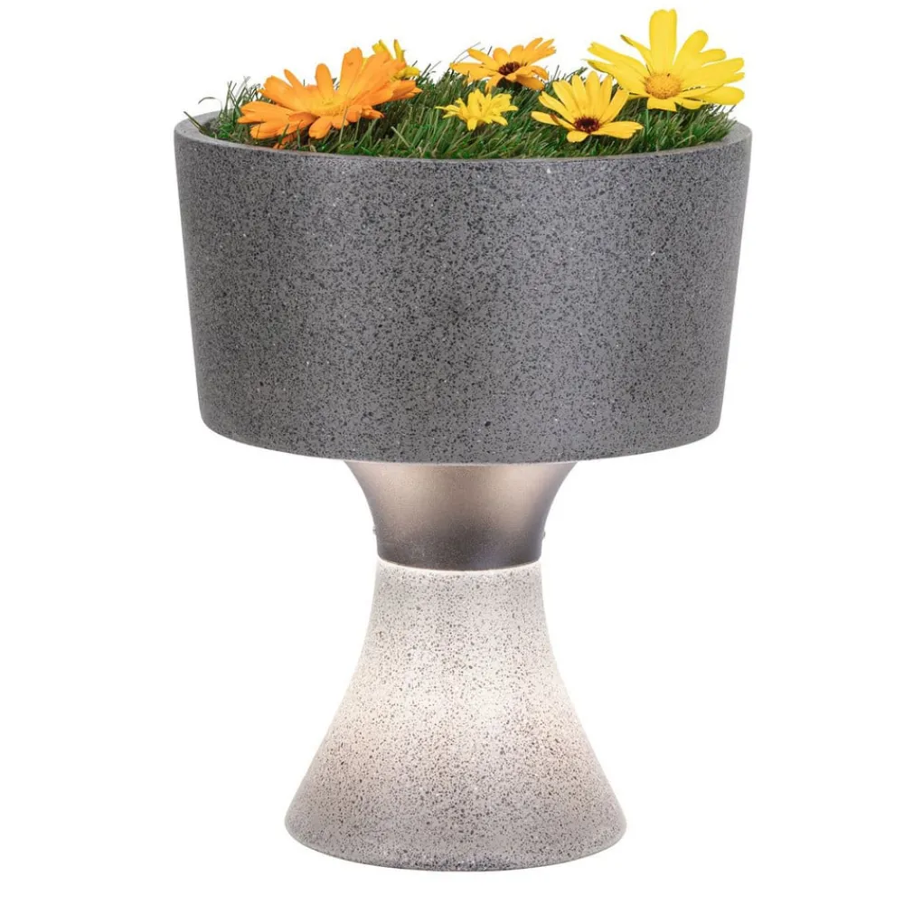 Denne LED-dekorationslampe er ideel til at belyse det udendørs område på en atmosfærisk måde . Det er designet som en planter og består af robust beton, der formidler naturlighed med sit sandstenudseende og dermed smelter harmonisk ind i enhver have. Concrea muliggør kombinationen af smukke planter og blødt, varmt hvidt lys på terrassen eller på balkonen. Anlægget kan indsættes i hulrummet, der er indgivet øverst, en LED-strip er indbygget i den nederste kant, der stråler nedad og dygtigt trapper bunden af lampen og gulvarealet.